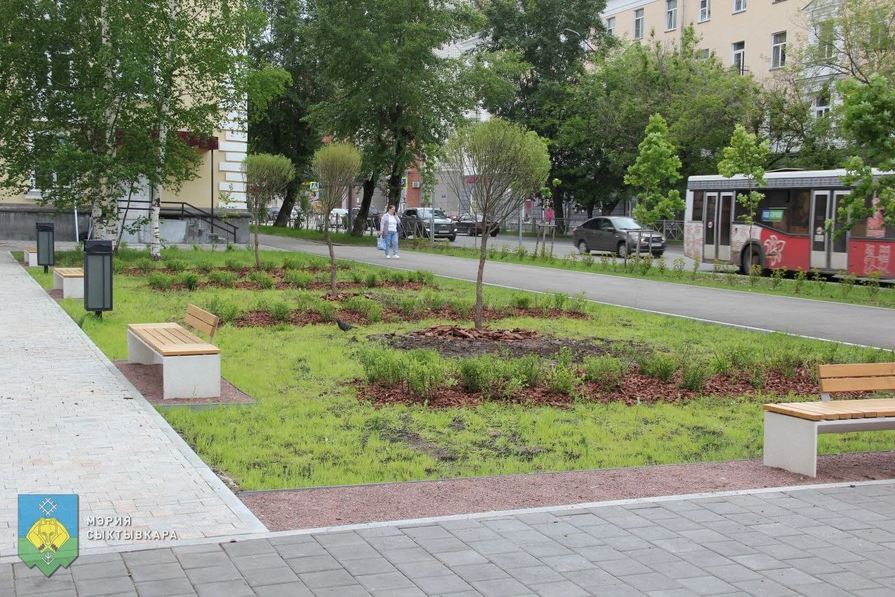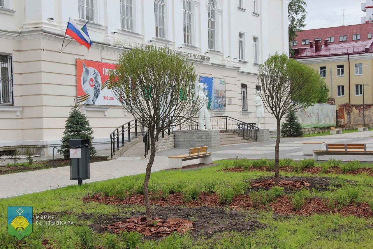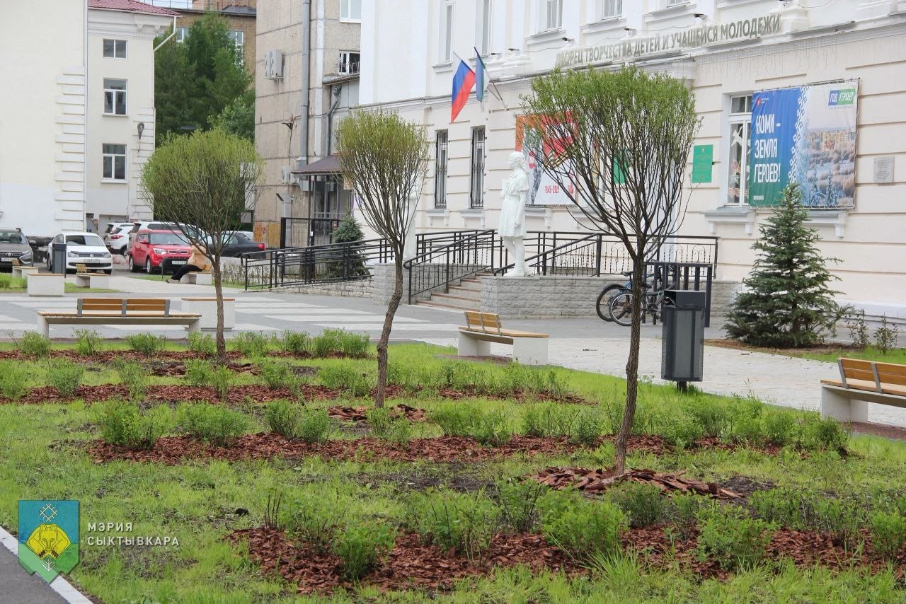 В новом сквере у Дворца творчества детей и учащейся молодёжи высадили новые саженцы. О ходе озеленения сообщает администрация столицы Коми.