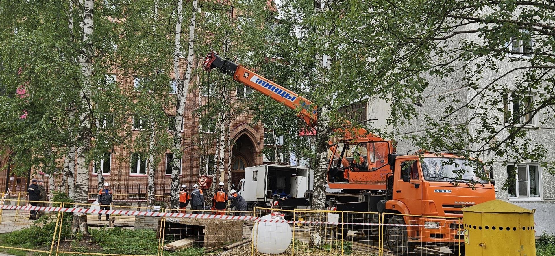 Работы идут у жилого дома №46 по улице Красных Партизан в районе Яблоневой аллеи.
