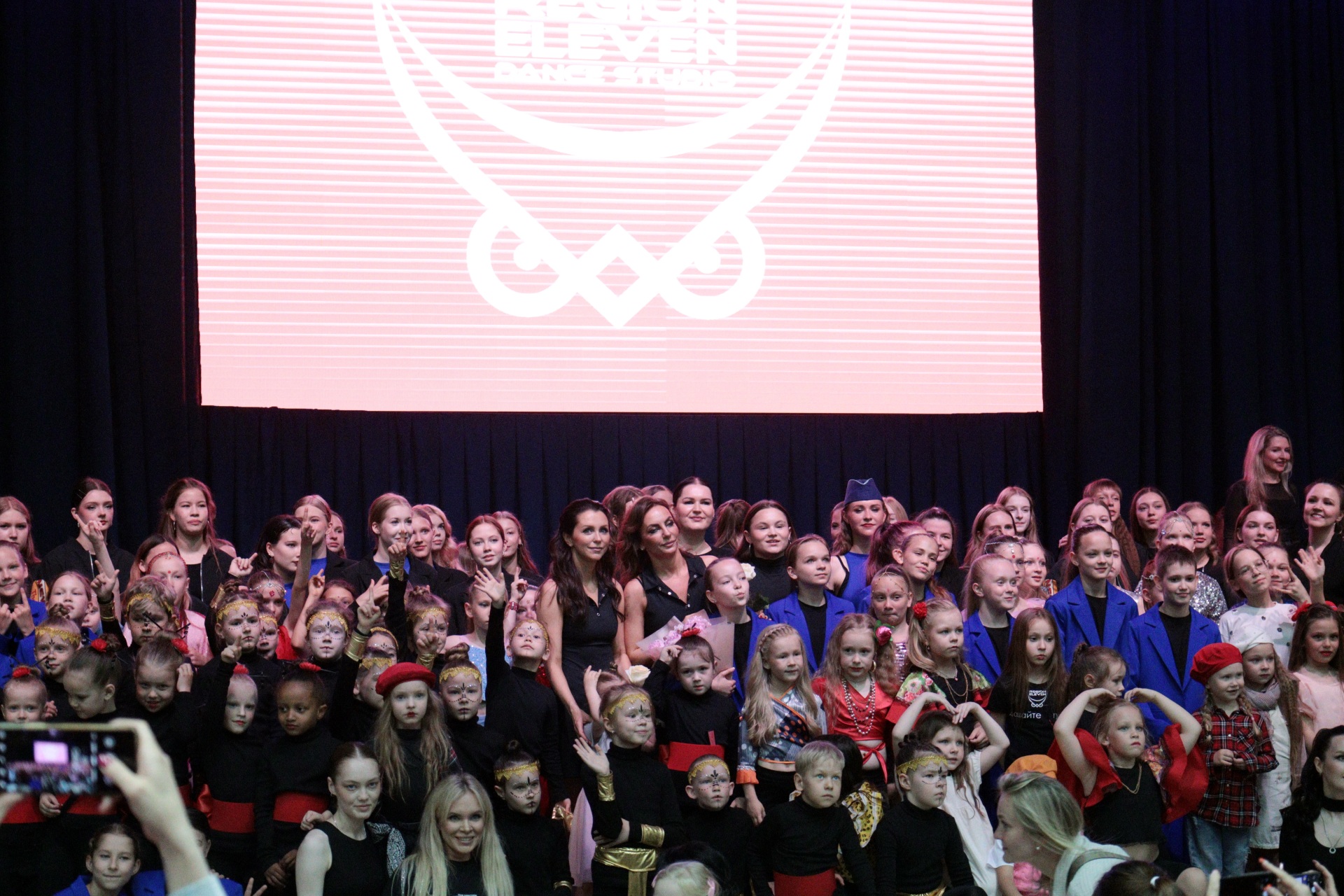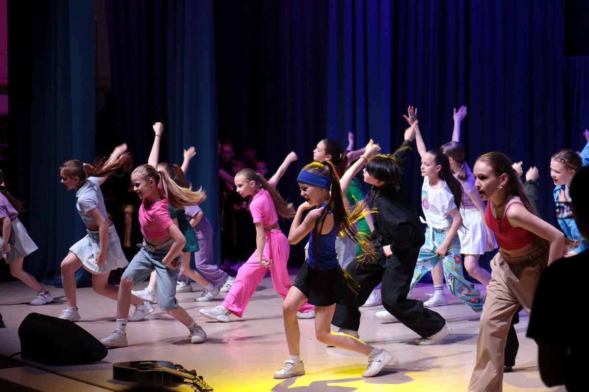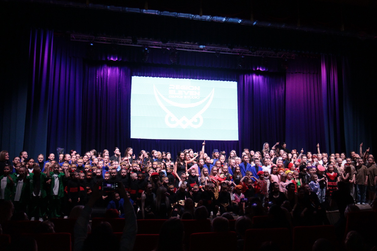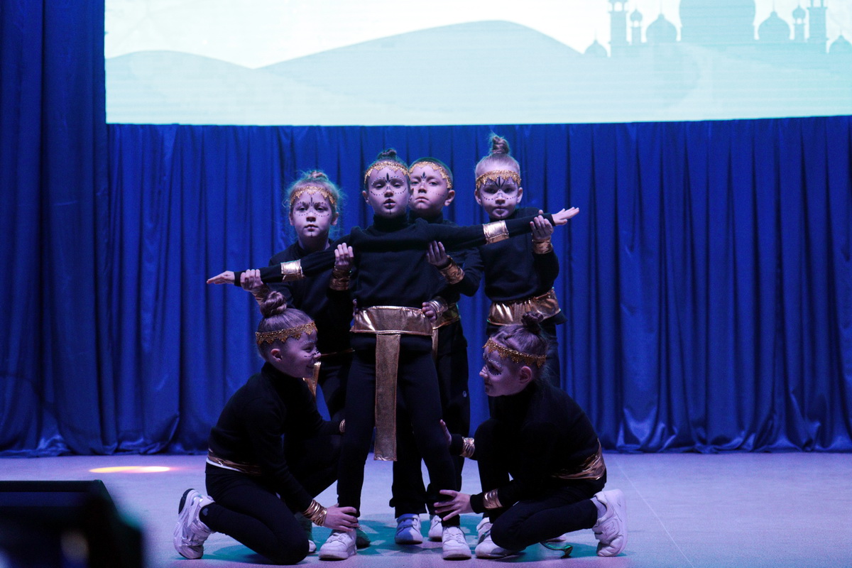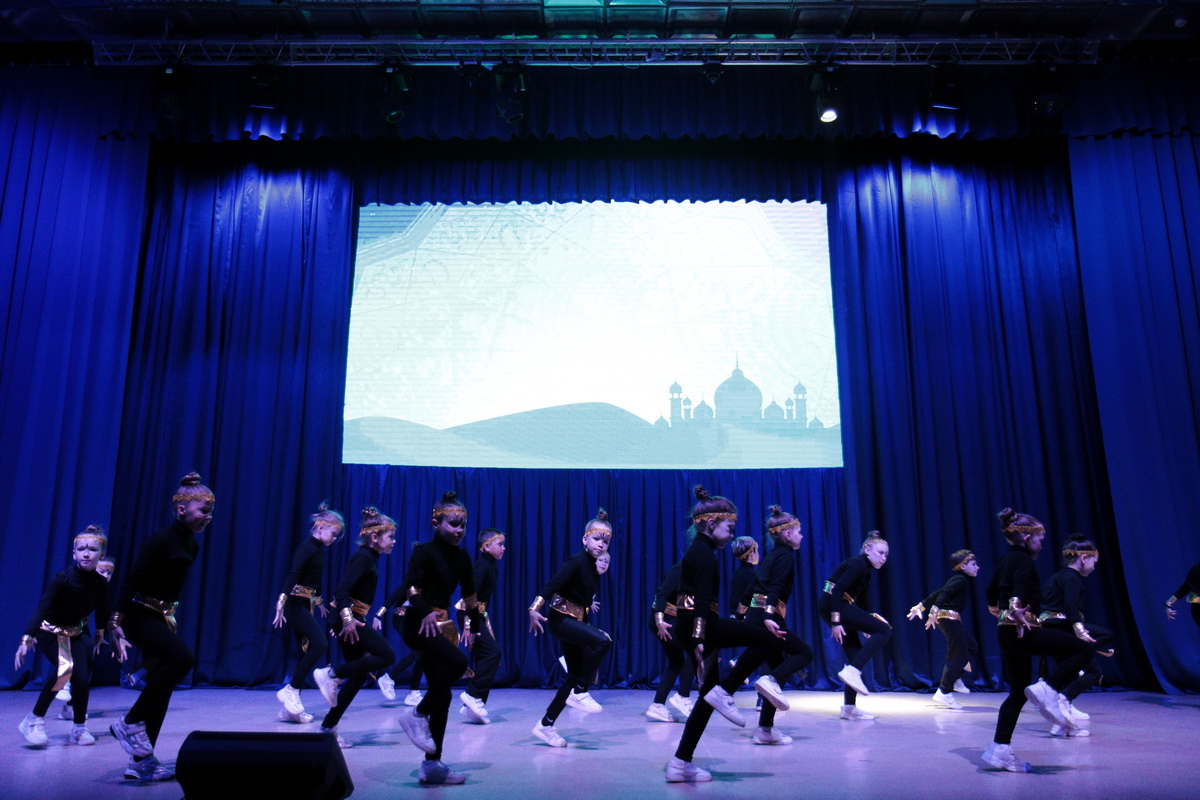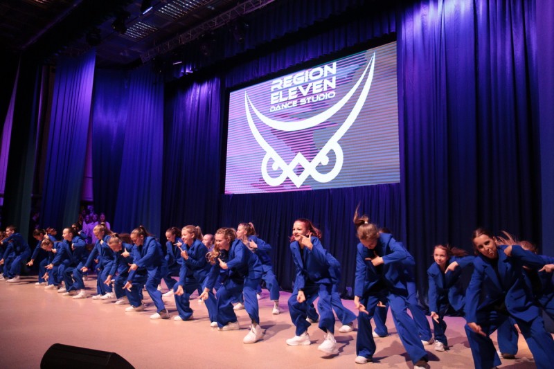 На сцену вышли десятки юных танцоров и, конечно же, взрослая команда "Регион 11", которая 9 апреля завоевала золото на чемпионате и первенстве России по фитнес — аэробике.