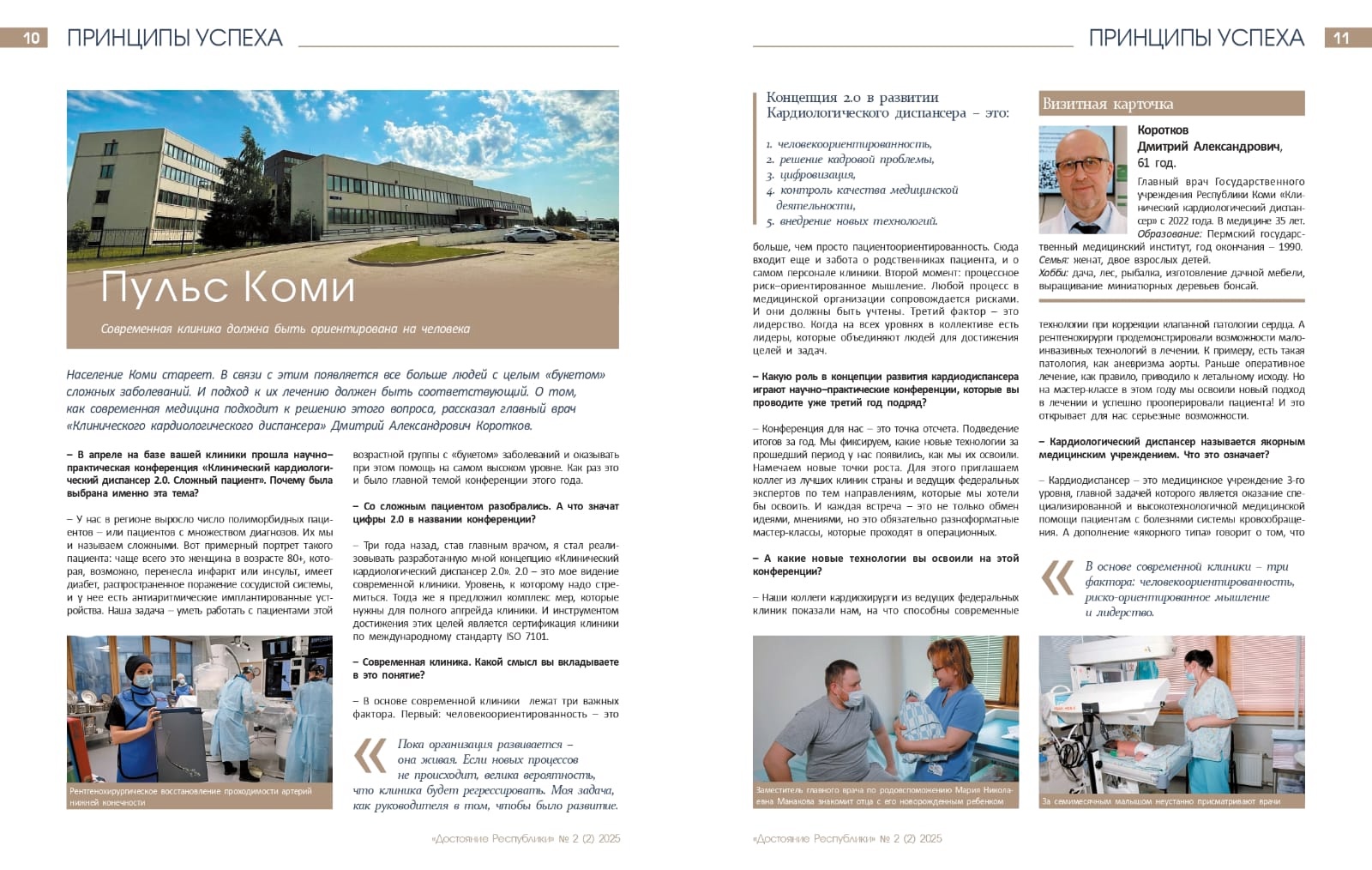 В рубрике "Принципы успеха" Алексей Старцев, директор сыктывкарского филиала страховой компании "СОГАЗ", поделился советами о повышении производительности труда и лояльности сотрудников, а Дмитрий Коротков, главный врач "Кардиологического диспансера", рассказал как меняется подход к лечению и технологиях, которые помогают республиканскому медицинскому учреждению конкурировать с частными клиниками.