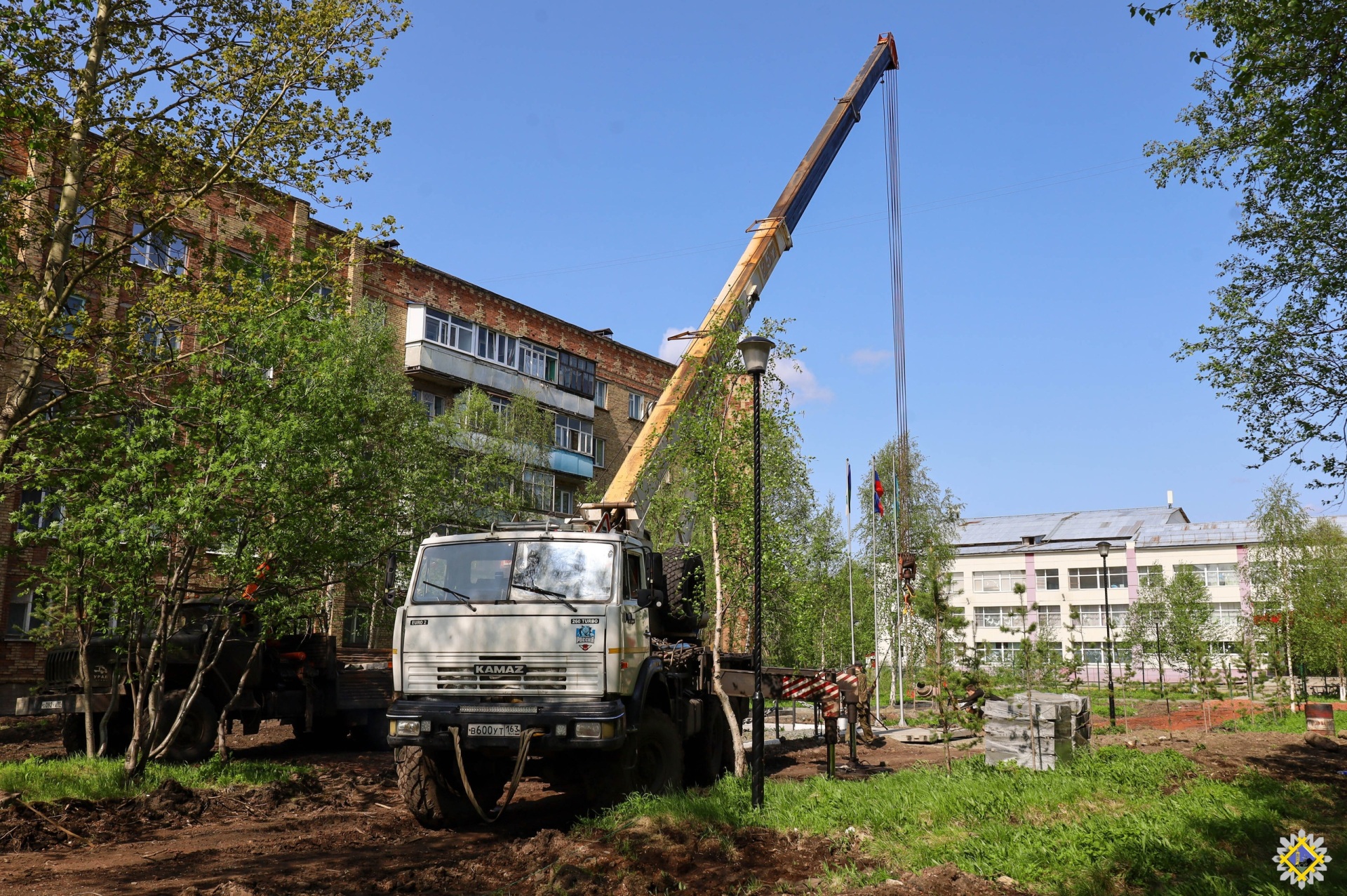 В интинском сквере ВДВ начались работы по благоустройству территории.