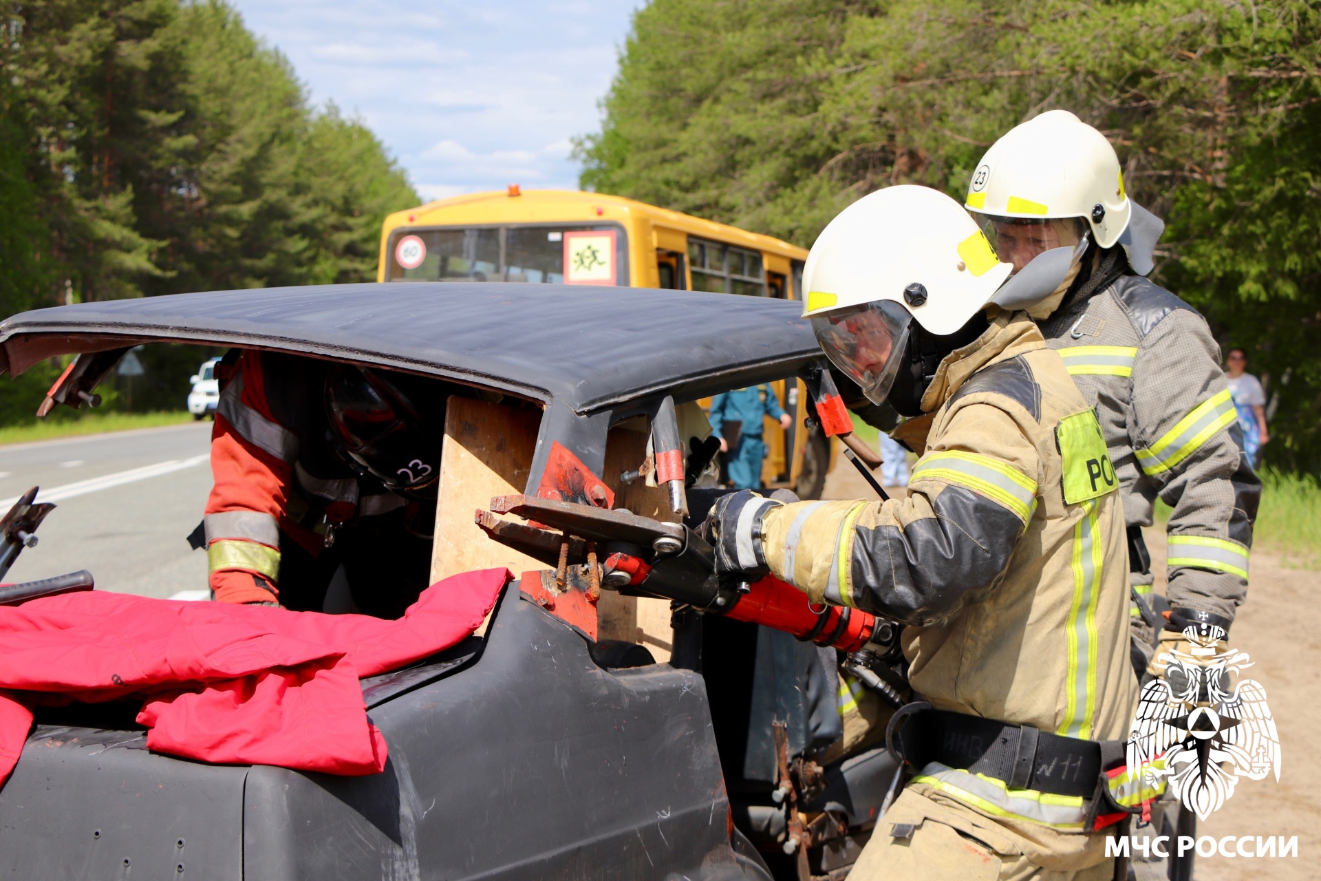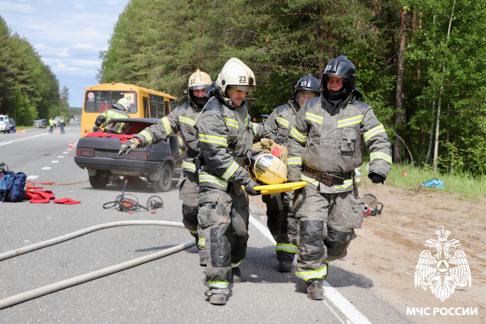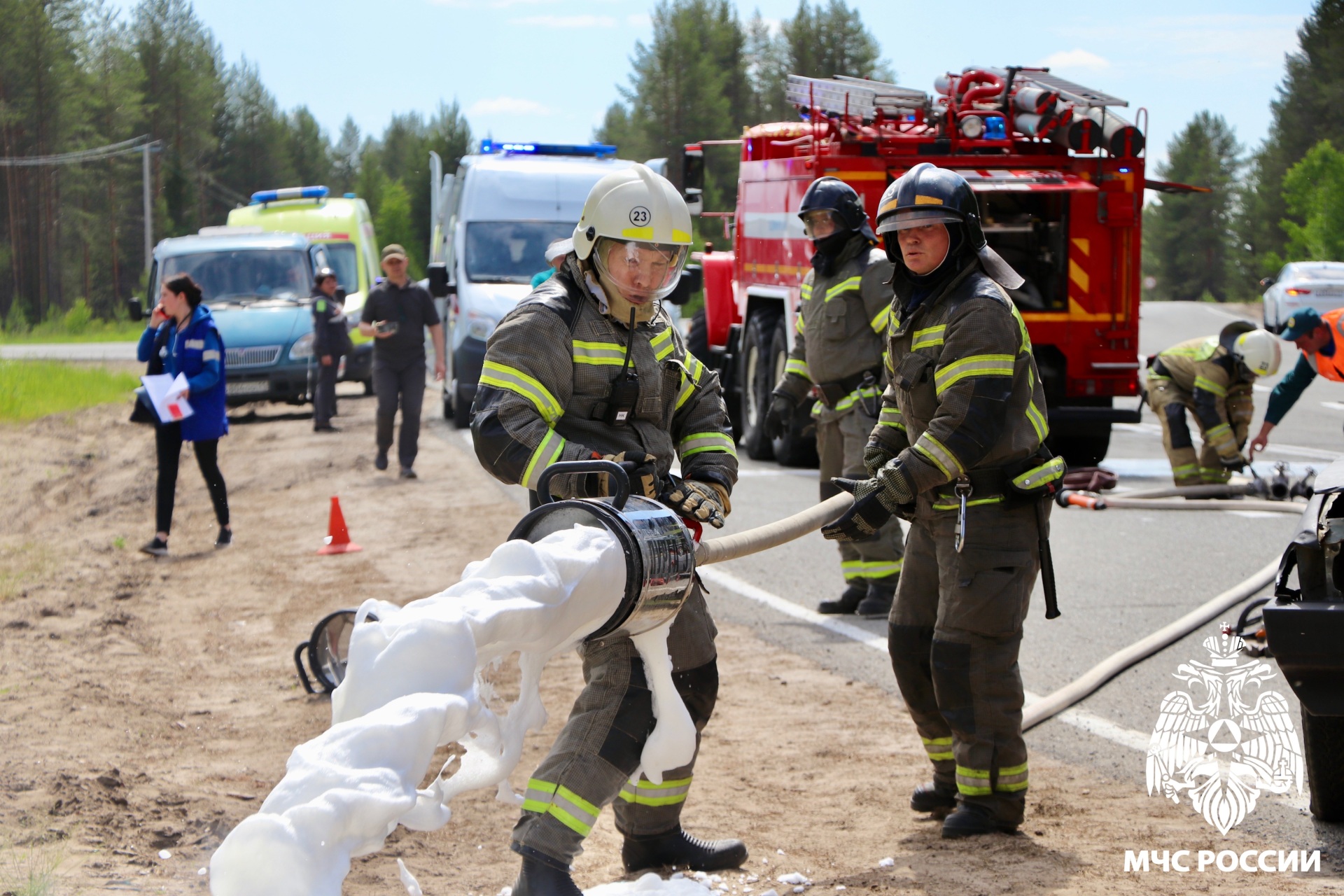 В Княжпогостском районе прошли тактико-специальные учения по ликвидации последствий крупного дорожно-транспортного происшествия, сообщает ГУ МЧС по Коми.