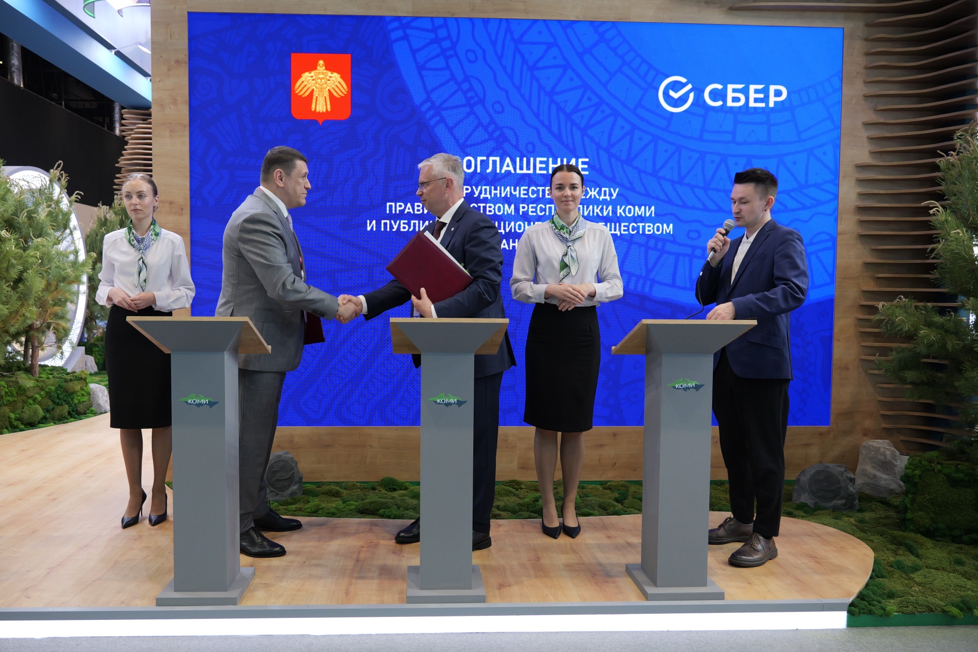 Сбербанк и Правительство Республики Коми на Петербургском международном экономическом форуме заключили соглашение о сотрудничестве в сфере социально-экономического развития. Документ подписали председатель Северо-Западного банка Сбербанка Дмитрий Суховерхов и председатель Правительства Республики Коми Дмитрий Братыненко.