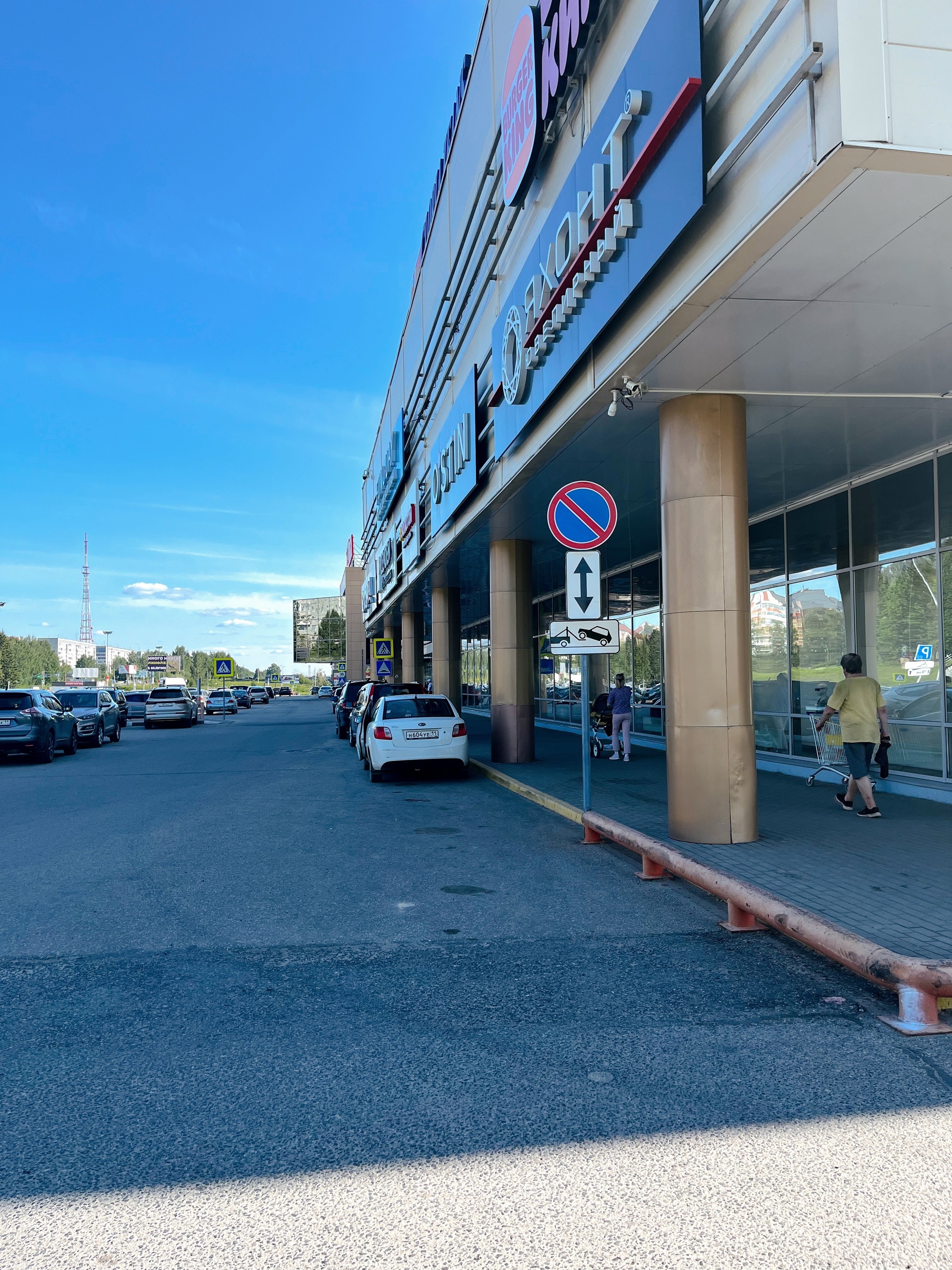 Таким образом, вводится запрет за стоянку транспортных средств вдоль всей лицевой стороны торгово-развлекательного центра "Макси".