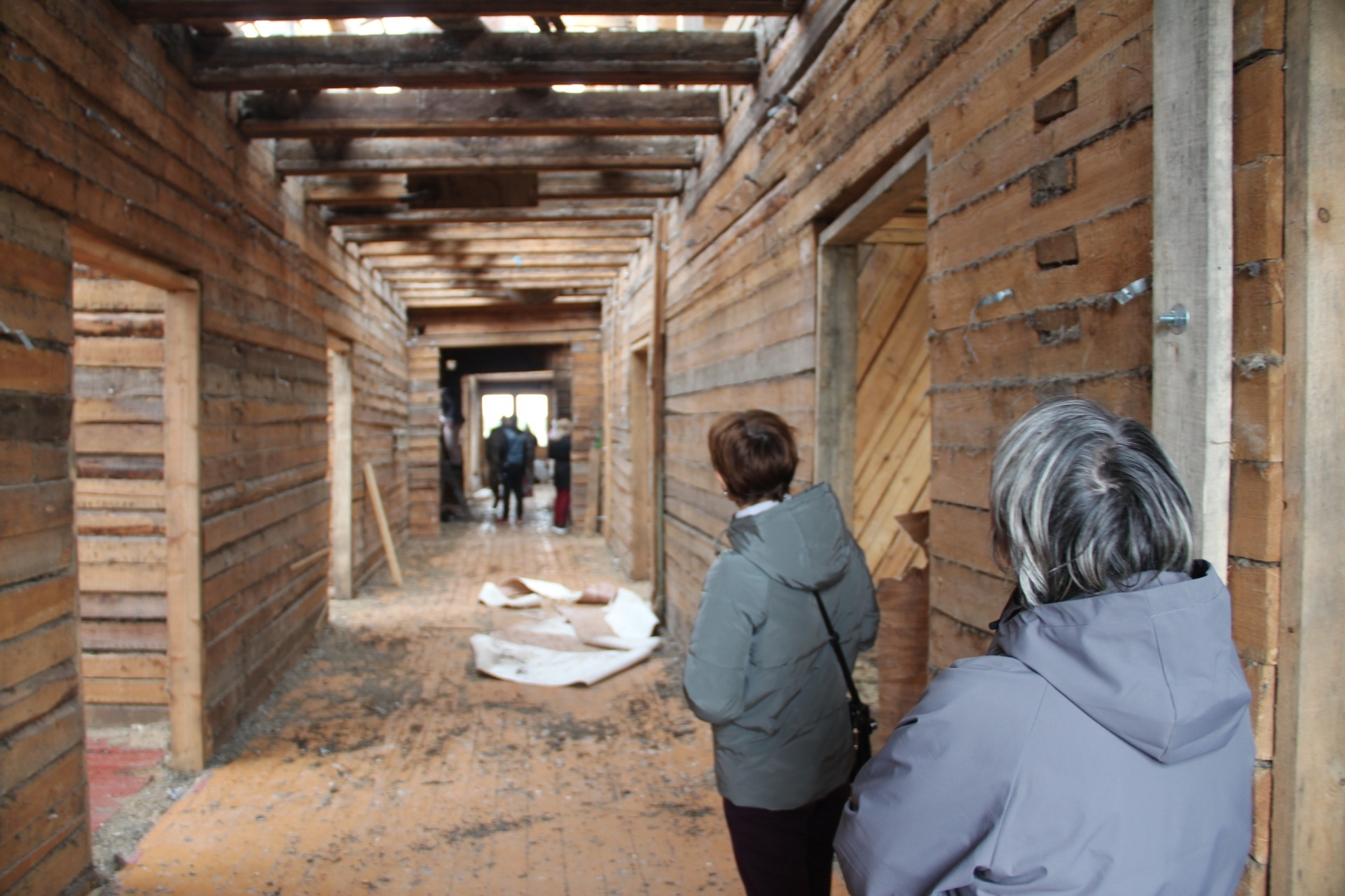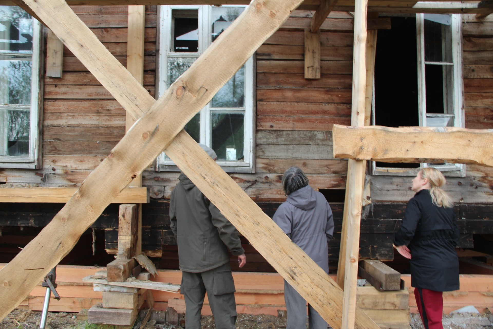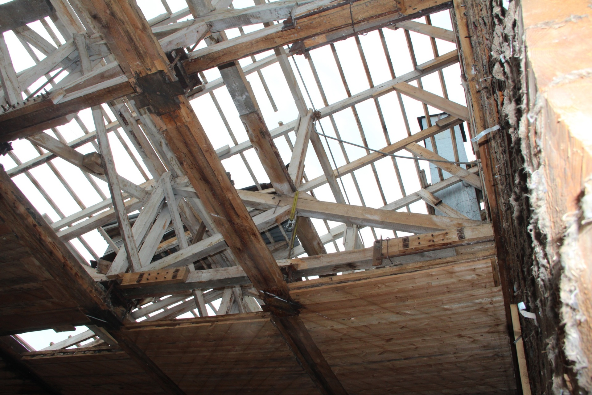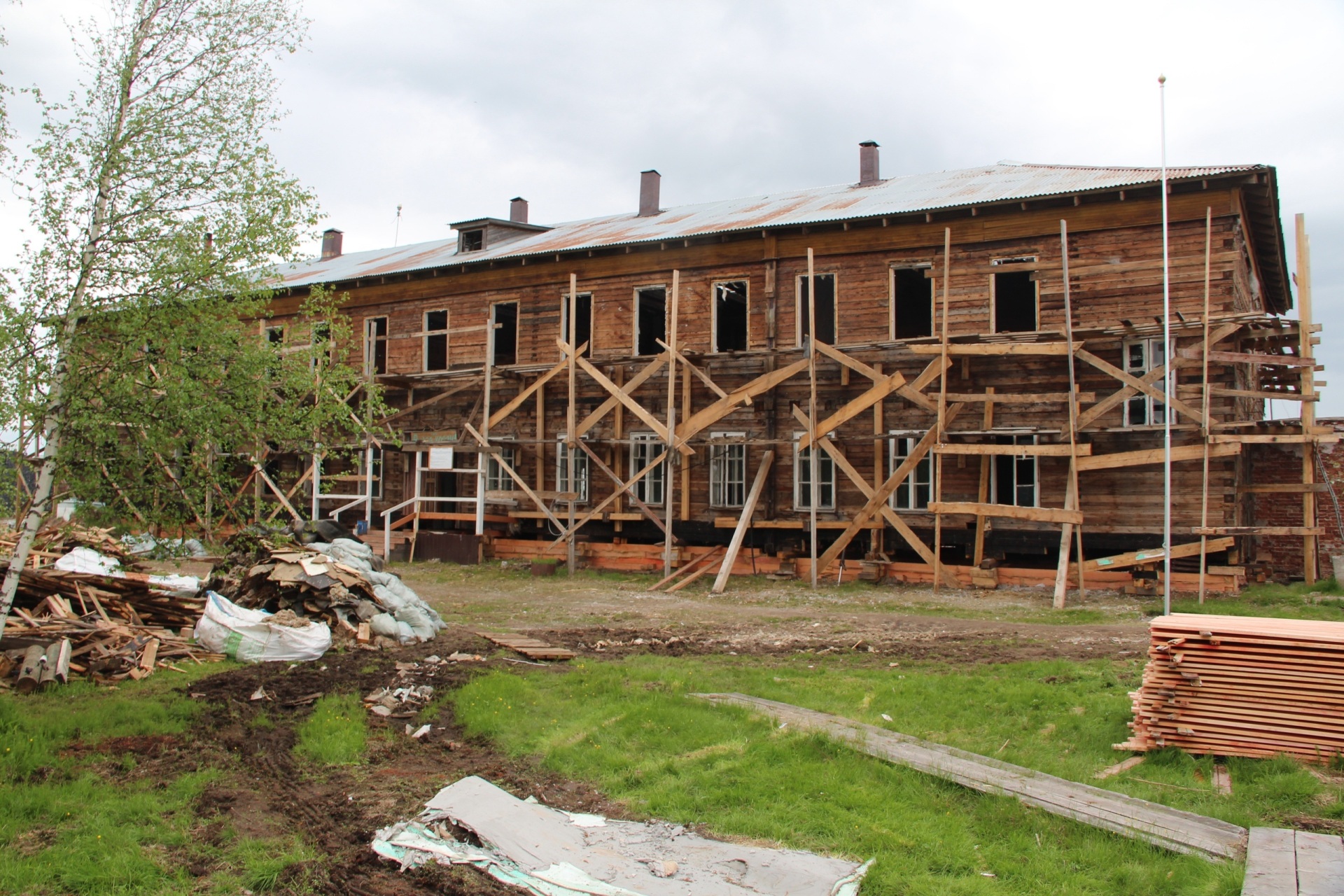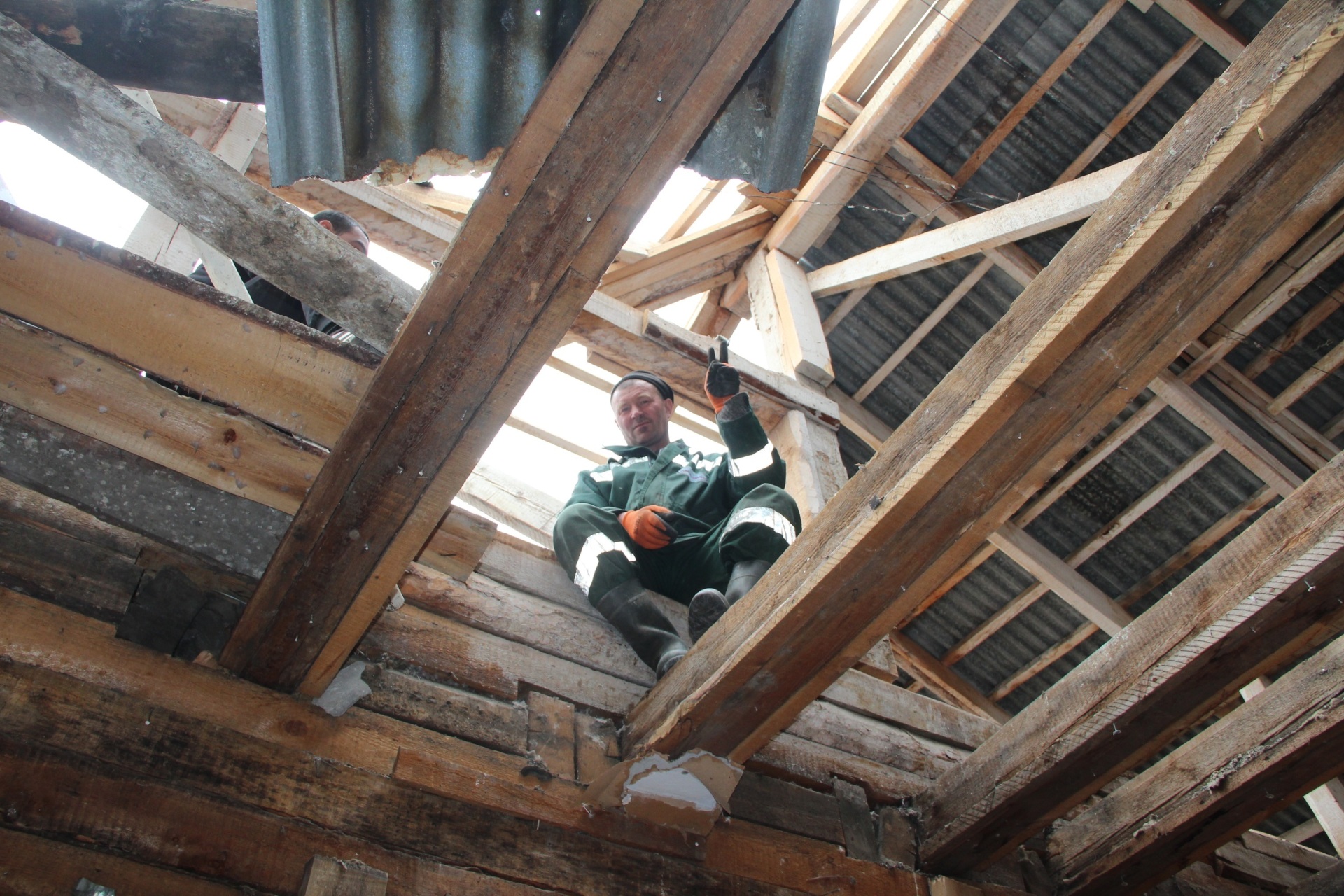 На 15 неделе с начала ремонта подрядчиком выполнены следующие работы: полная замена нижних венцов здания по периметру школы, установка лаг в кабинетах, демонтаж профнастила с северной стороны здания школы, внутренний демонтаж чердачного помещения.