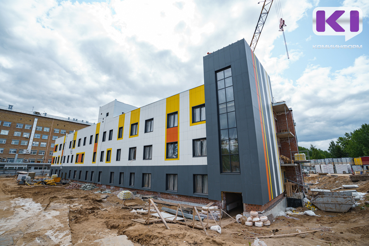 Представитель подрядчика, заместитель директора по строительству компании ООО "ТетраСтройКоми" Денис Ганин рассказал журналистам, что в каждой палате будет свой санузел, а в здании уже монтируются пять лифтов — пассажирские и грузовые. По словам представителя строительной компании, все основные производственные процессы запущены, в четверг привезут оборудование для кислородной станции, после чего начнут вести трассу на больницу.