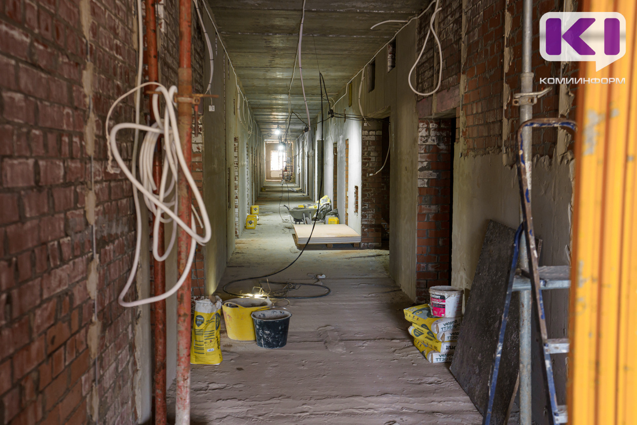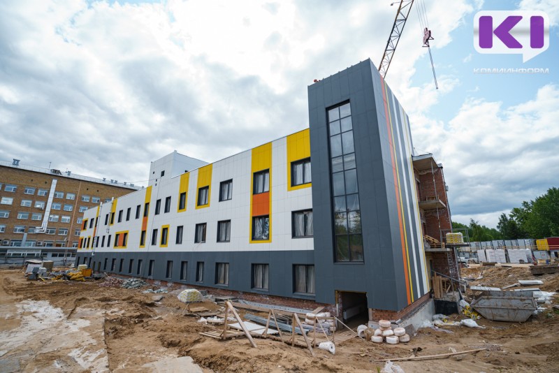 Несмотря на все сложности, строительство, по словам заместителя директора компании ООО "ТетраСтройКоми", идет в графике: за зиму подняли коробку здания, сейчас полным ходом идут отделочные работы. "Как только все основные стройматериалы поднимем в здание, завершим отделку фасада. Цоколь будем делать одновременно с благоустройством территории", — подытожил Денис Ганин.