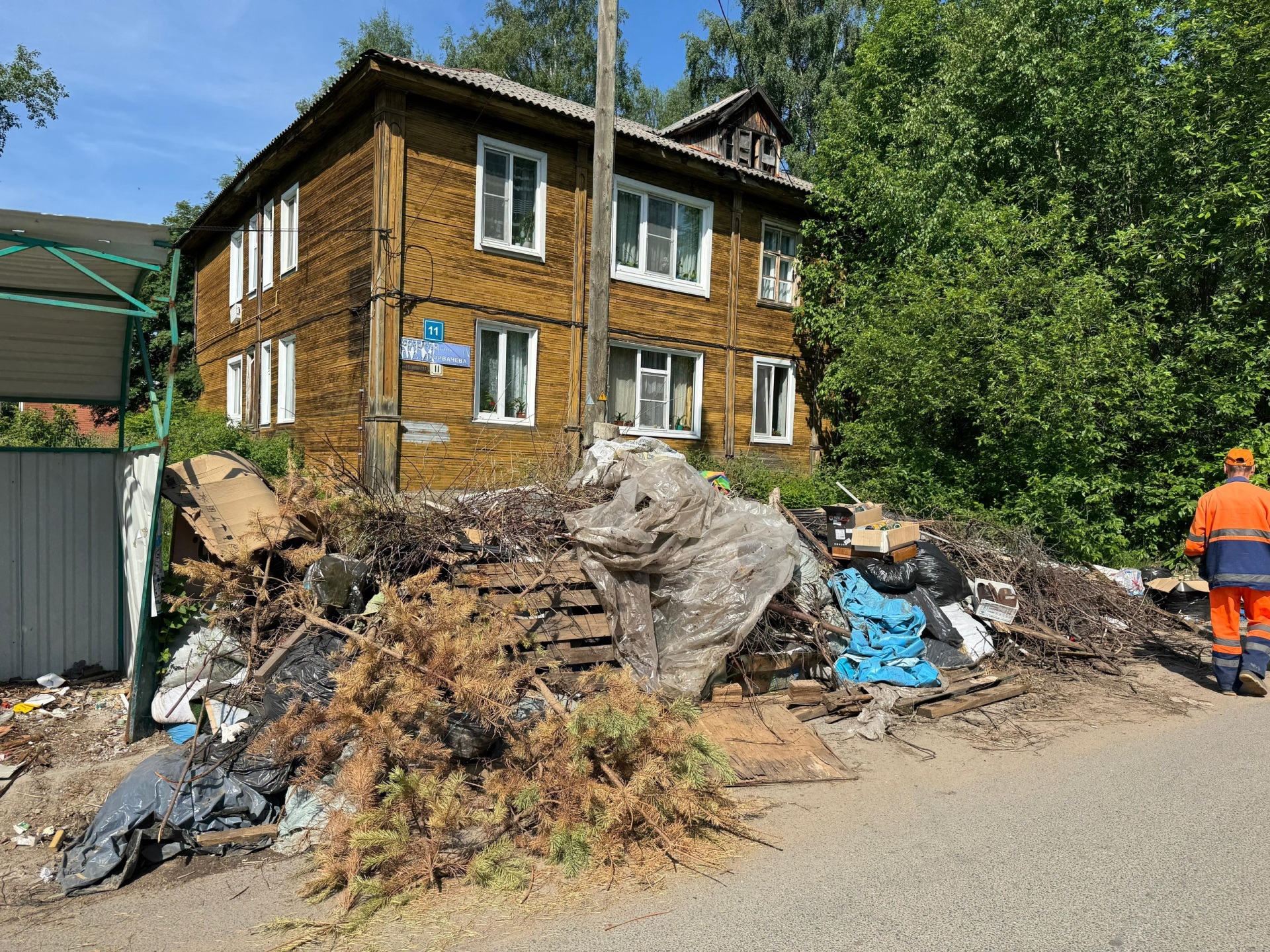 Ранее тут стоял кузов для сбора мусора, однако несколько недель назад его заменили на несколько мусорных баков, объема которых не хватает жителям частных домов. Местные жители по привычке несут в баки мусор, который не могут утилизировать самостоятельно с помощью печей. Однако в пластиковые контейнеры он теперь не вмещается.