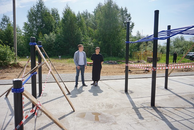 Уже подготовлено основание для монтажа спортивного оборудования, установлен турниковый комплекс, тренажеры и резиновое покрытие будет установлено подрядчиком до конца июля.