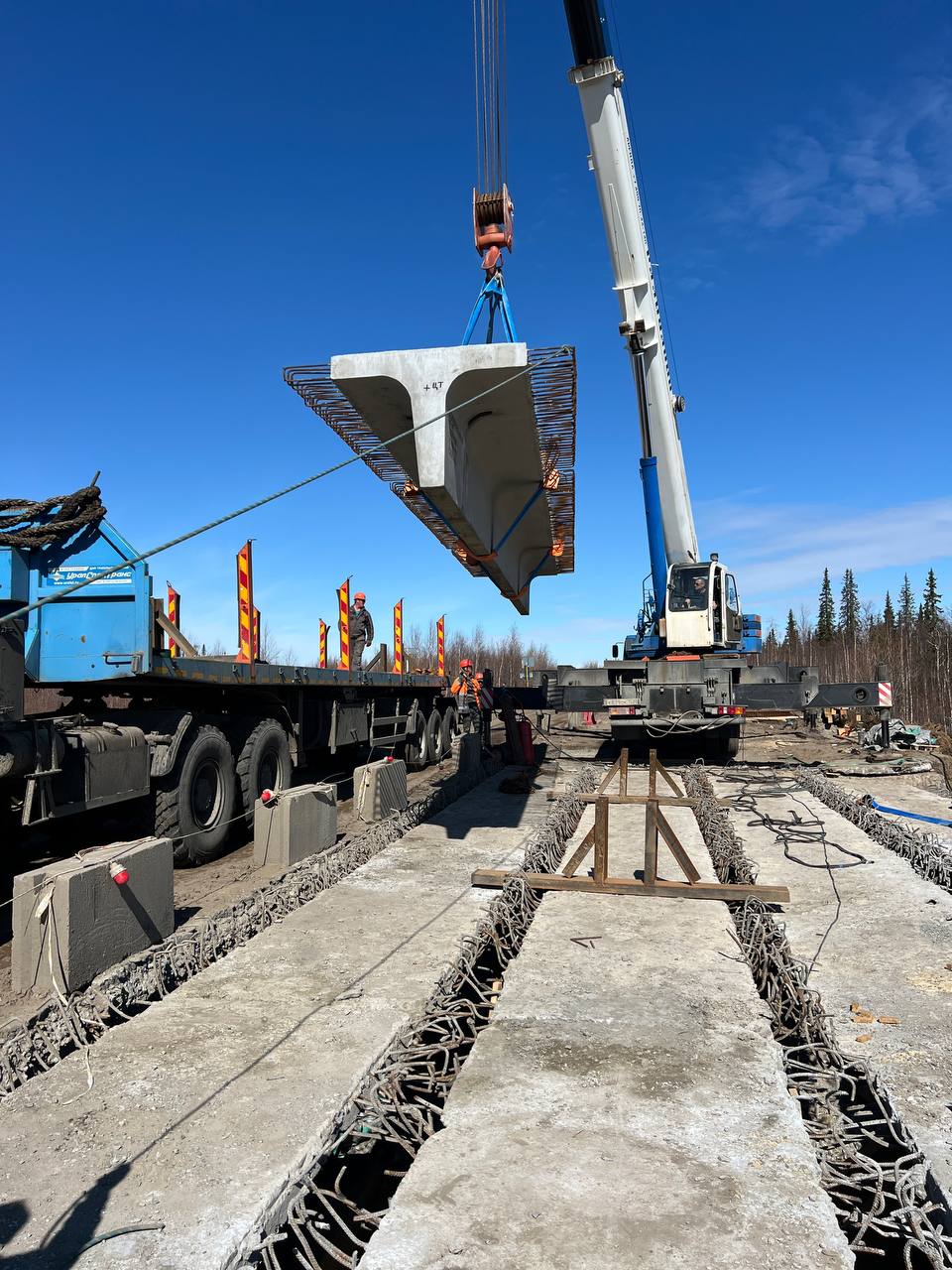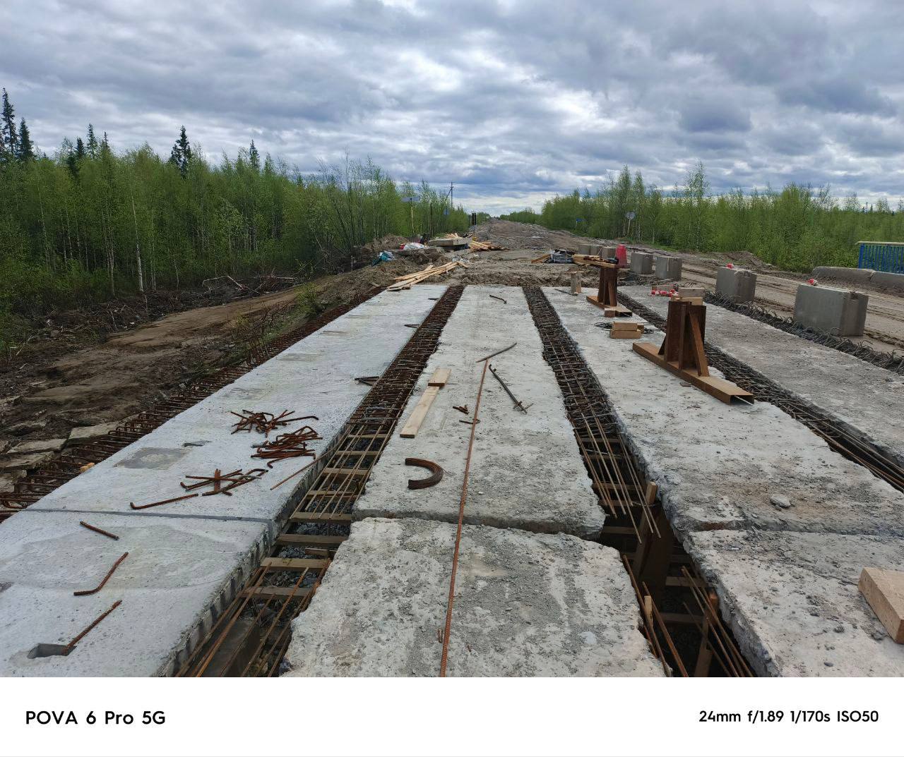 Подрядчик уже выполнил демонтажные работы, произвел устройство монолитных подферменников и монтаж балок пролетных строений. Сейчас ведутся работы по устройству шкафных стенок и швов омоноличивания балок.