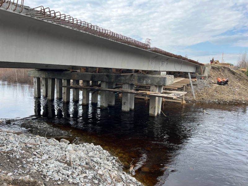 На автомобильной дороге Сыктывкар – Ухта – Печора – Усинск –Нарьян-Мар на участке Усть-Уса – Харьягинский подрядная организация ООО "Архангельские дороги и мосты" выполняет работы по ремонту моста через реку Евсявис, сообщает Минстрой Коми.