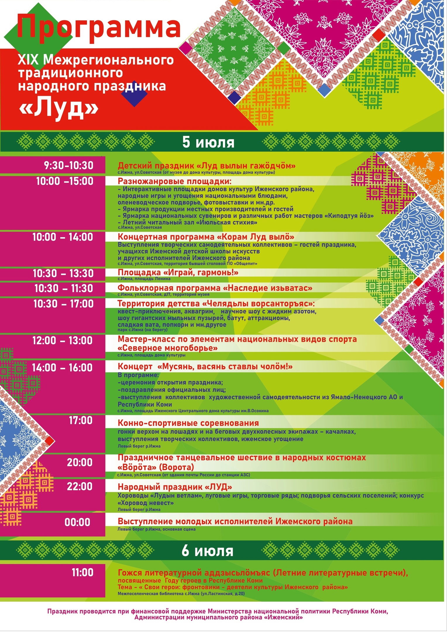 Как сообщает Миннац Коми, в программе праздника – ярмарки, интерактивные площадки, фольклорная и концертная программа, детская зона, конные соревнования и мастер-классы по национальным видам спорта.