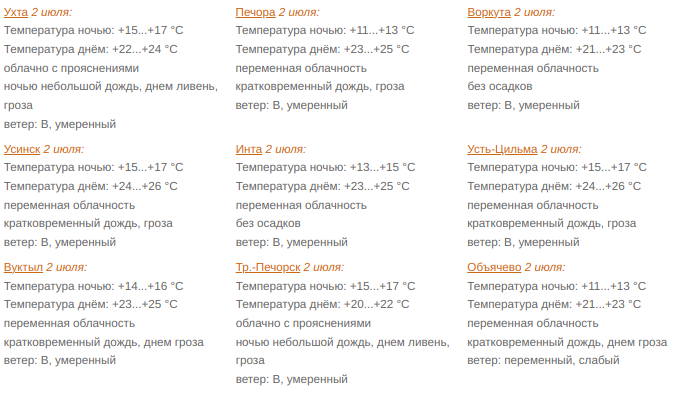 Прогноз погоды по республике на 2 июля дал Коми ЦГМС.