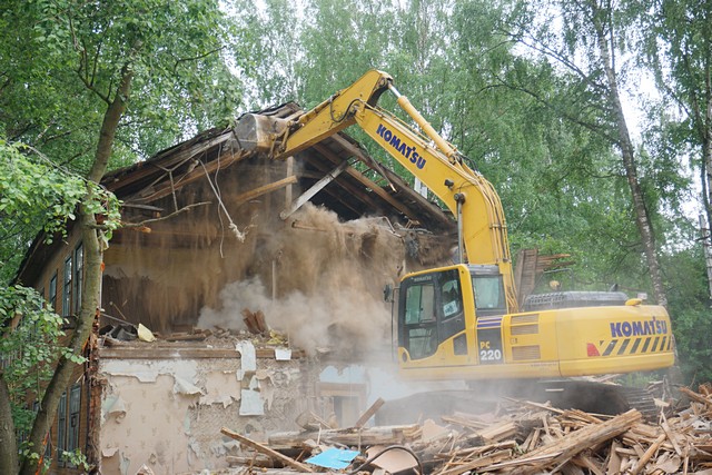 Работы по сносу ведутся в центре города прямо сейчас.