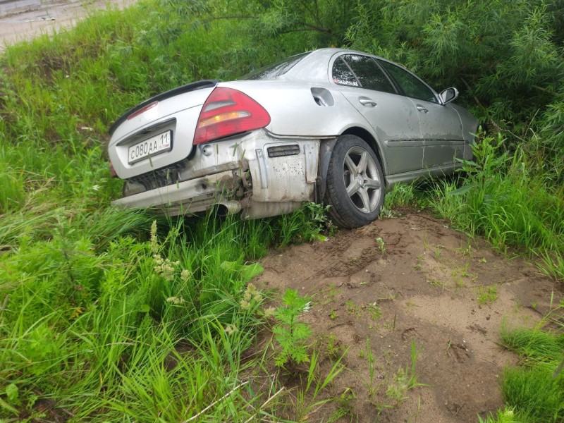 ДТП случилось в 8:40 сегодня, 2 июля. Водитель 1996 года рождения за рулем Mercedes-Benz ехал по улице Лесопарковой со стороны улицы Ручейной в направлении Сысольского шоссе. Напротив дома 2/35 по улице Лесопарковой он не учел безопасную дистанцию до впереди движущегося в попутном направлении транспортного средства и совершил столкновение с Volkswagen Polo, который остановился, чтобы повернуть налево на прилегающую территорию. После этого Mercedes-Benz совершил съезд в правый по ходу движения кювет.