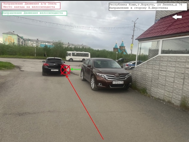 В 16:50 водитель, управляя машиной Opel, двигаясь по прилегающей территории д.76 по ул. Ленина, не уступил дорогу велосипедисту, который двигался по главной дороге вдоль тротуара, и наехал на мальчика.
