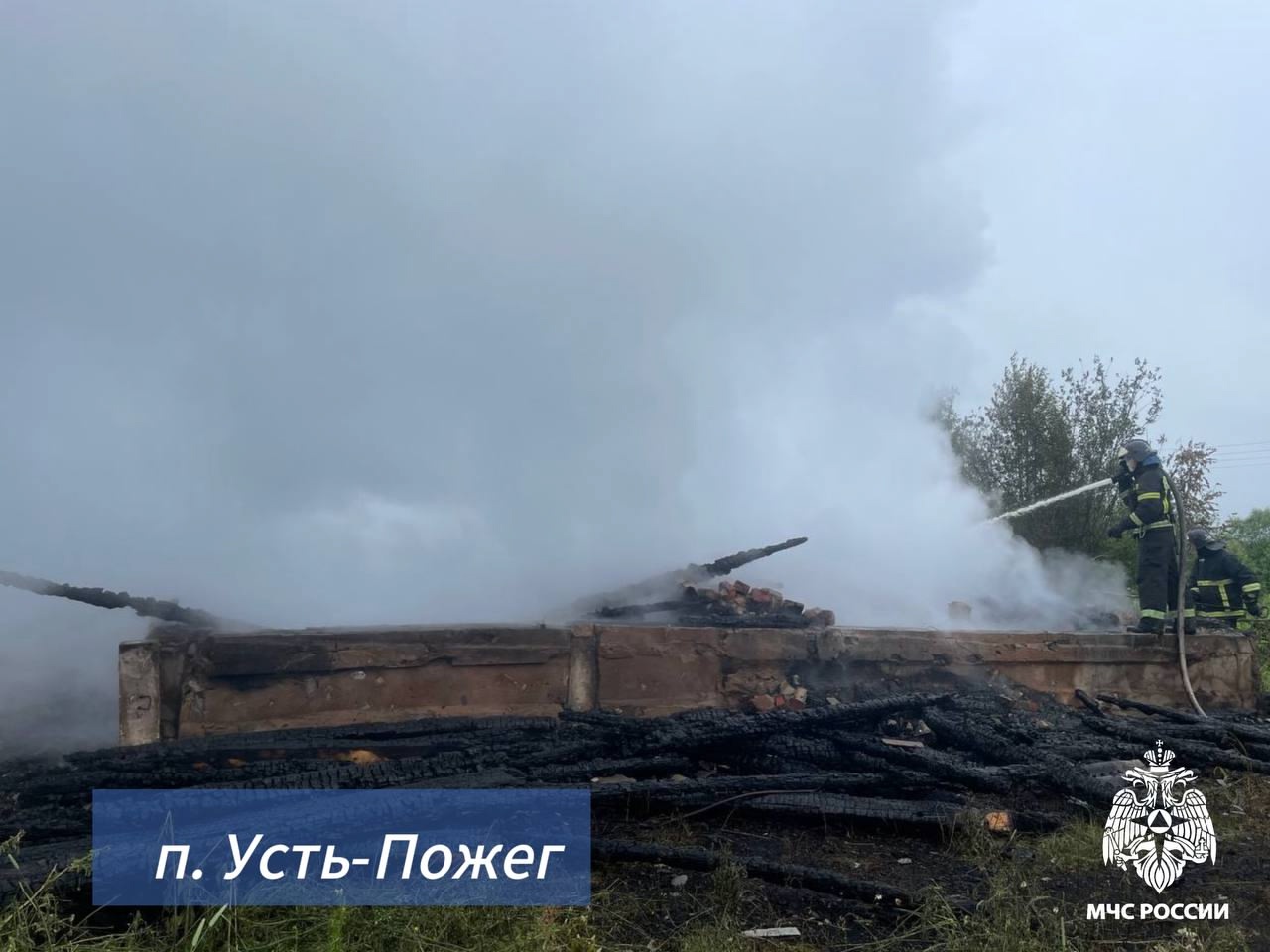В п. Усть-Пожег возгорание в неэксплуатируемом здании по улице Центральная ликвидировано на площади 288 квадратных метров. Причина пожара устанавливается органами дознания ГПН.