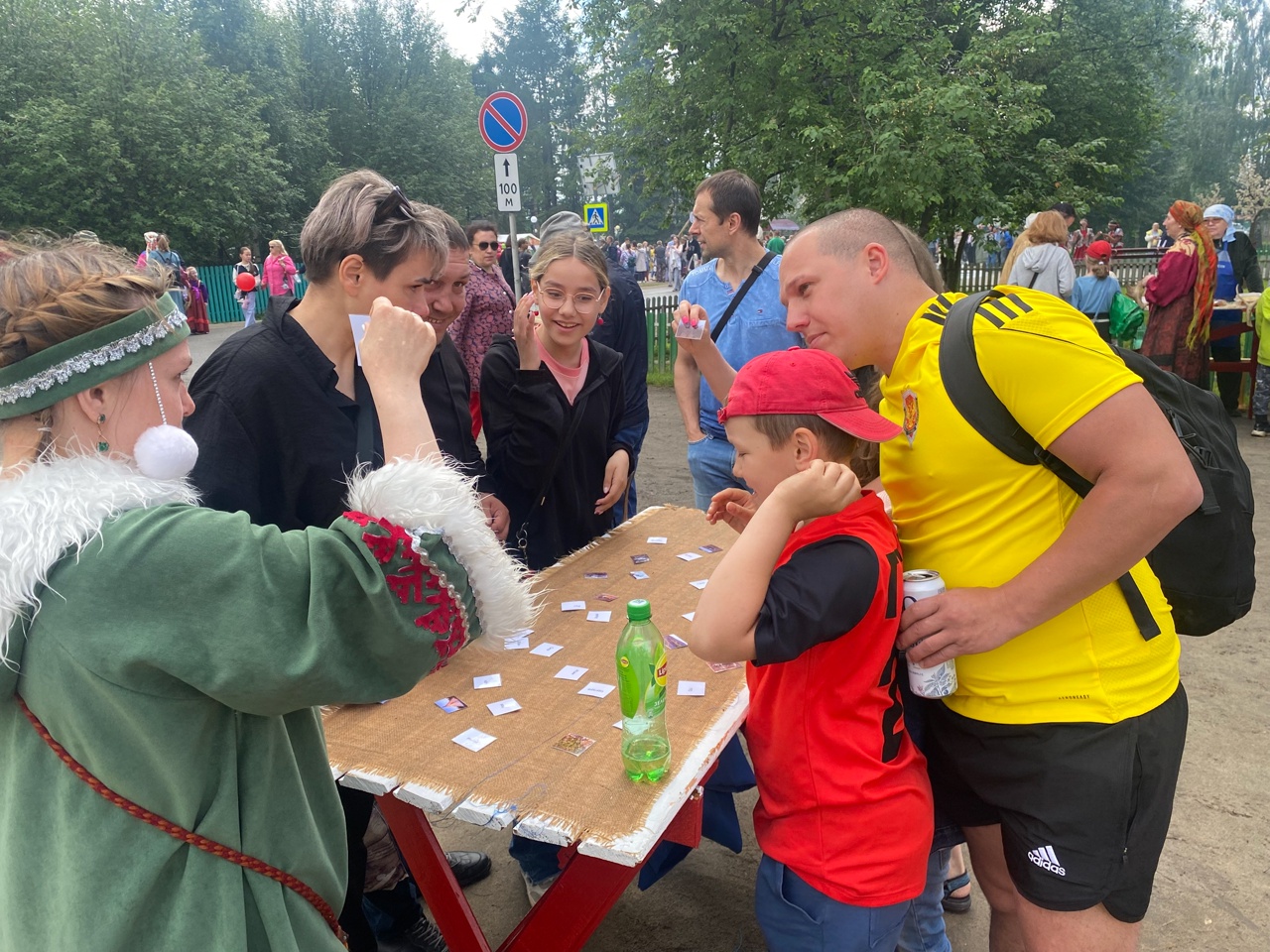 В парке на набережной учащиеся Ижеской школы провели для всех желающих квест "Пазл традиций". Участники проходили пять станций, каждая из которых раскрывала уникальные аспекты традиций Ижемского района. На станции "Веж пельӧс" (Зеленый угол) участники узнали о значении деревьев и растений в жизни ижемцев, этап "Пагрэм" (Погребок) посвящен традициями выращивания сельскохозяйственных культур и хранения продуктов.