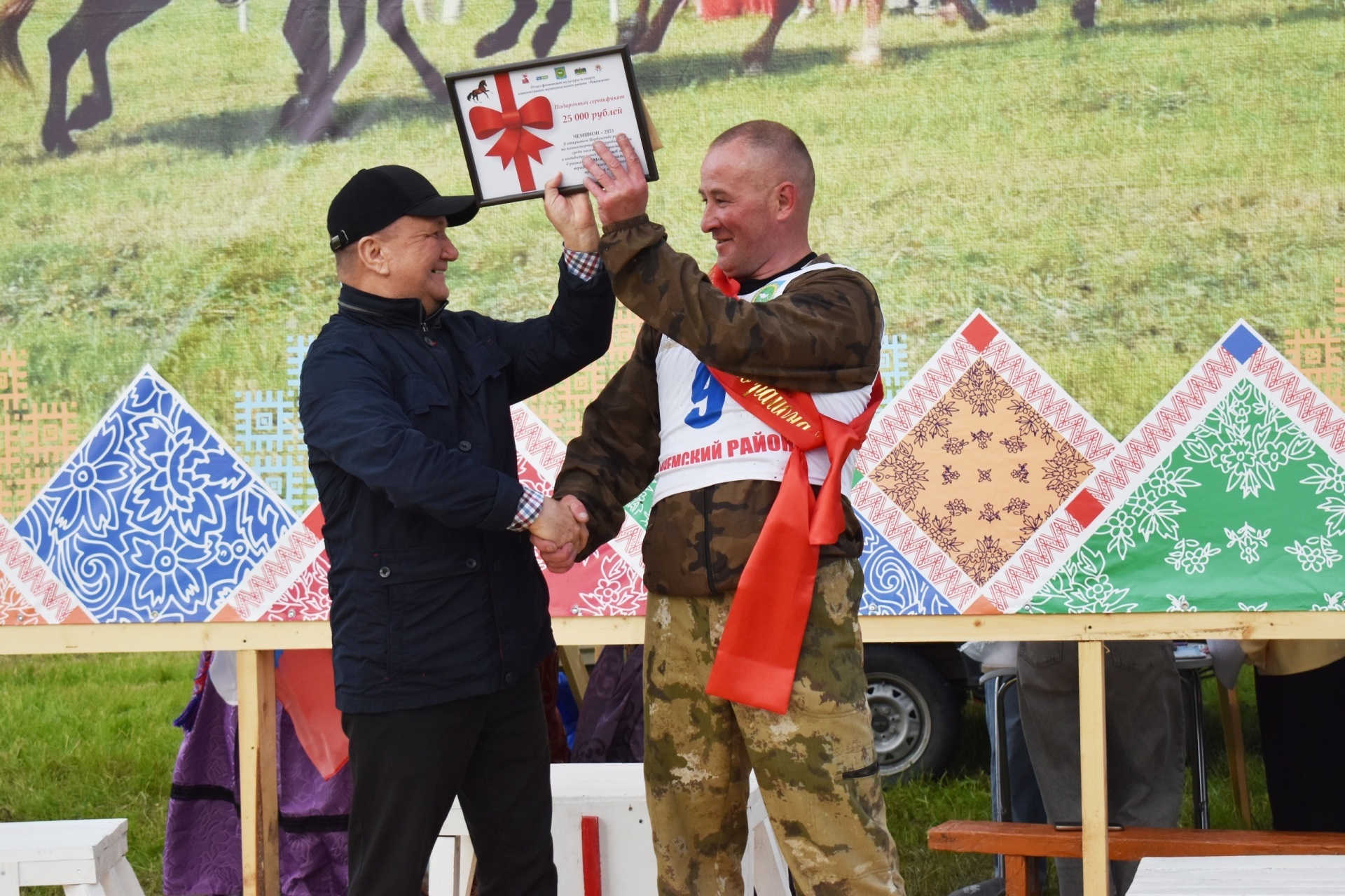По итогам соревнований Андрей Хозяинов из Кельчиюра одержал победу в заезде на кобыле-полукровке Ведьме.