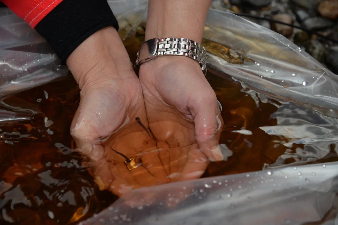 Сижков выпустили не сразу. Сначала пакеты, в которых они доставлялись, постояли некоторое время в речной воде, чтобы выровнялась температура. Так сижки привыкали к новым условиям. И только после этого мальков выпустили в большое плаванье под дружные аплодисменты группы поддержки из школьников. На этапе взросления в естественном водоеме сижкам, каждый из которых пока не более двух сантиметров в длину, предстоит преодолеть непростой путь. На вопрос одного из ребят, почему в реку выпускают таких малышей, экологи объяснили: более зрелым особям придется сложнее, так как они привыкают к искусственному кормлению.