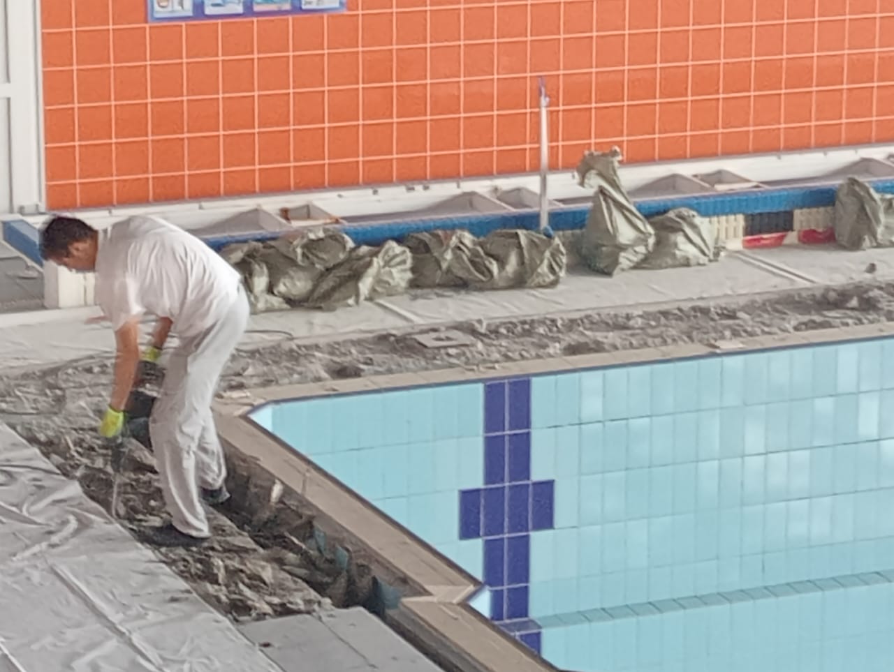 Объем работ – достаточно внушительный. Подрядчикам предстоит выполнить реконструкцию переливного лотка по периметру бассейна с заменой всей гидроизоляции.