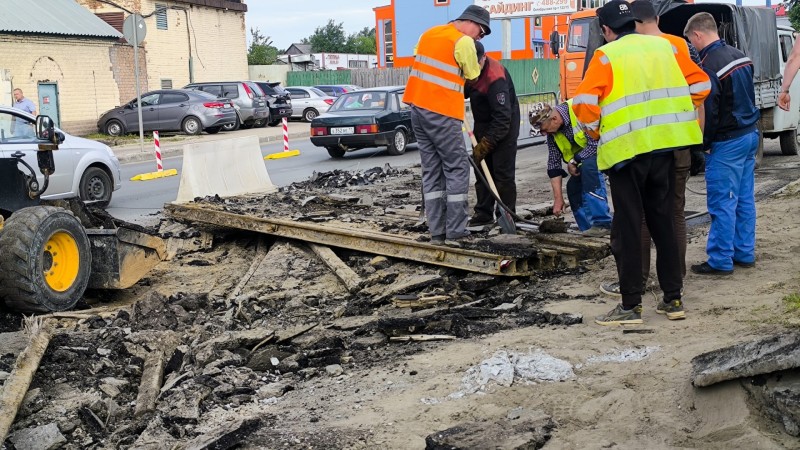 "Несмотря на незначительную протяженность участка, мы столкнулись с рядом сложных узлов. На трассе есть завышение тротуара на уровне 1,2 метра выше проезжей части, здесь будет занижение пешеходной зоны с последующей установкой перильных ограждений. Также мы сейчас занимаемся разбором переезда от старого железнодорожного переезда, это наследие советского периода, раньше по нему со складов перемещали грузы, а позже находившиеся под асфальтом рельсы из-за линейного расширения металла вызывали разрушение асфальта. Мы приняли решение демонтировать и удалить рельсы с этого участка", - пояснил Д.Дитриев.
