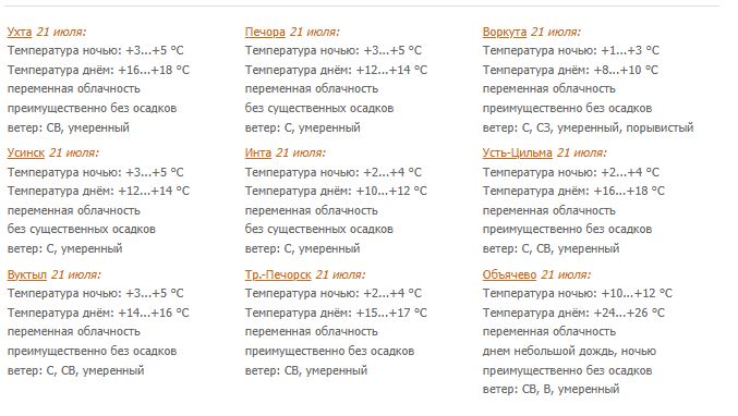 В Сыктывкаре переменная облачность. Преимущественно без осадков. Ветер северо-восточный, восточный 4-9 м/с. Температура ночью +10...+12°С, днем +21...+23°С.