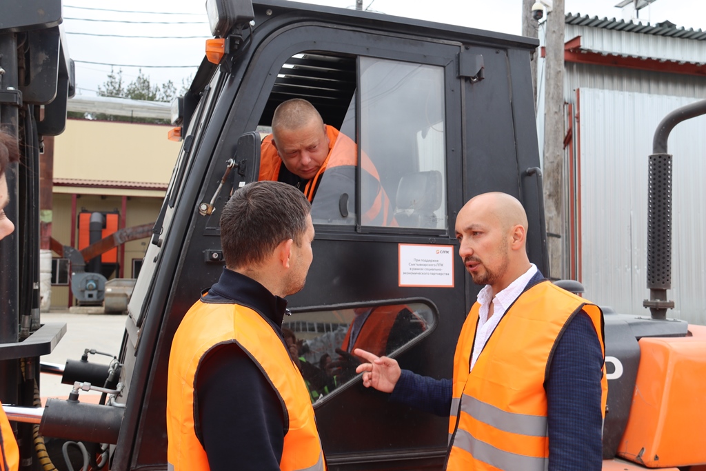 В ходе визита делегация комбината посетила местное лесоперерабатывающее предприятие предпринимателя Николая Попова. Благодаря социальному проекту с СЛПК бизнесмен смог развить свой бизнес, а в 2022 году приобрести новый вилочный погрузчик стоимостью почти 1 млн рублей.