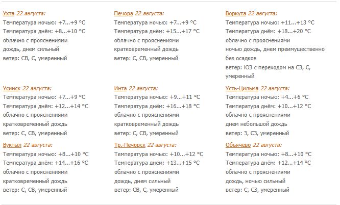 В Сыктывкаре облачно с прояснениями. Дождь. Ветер северный, северо-западный 4-9 м/с. Температура ночью +6...+8°С, днем +11...+13°С.