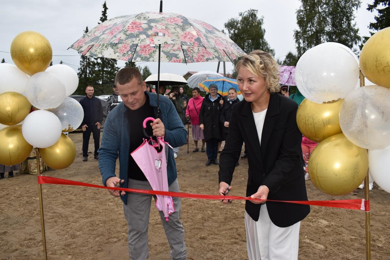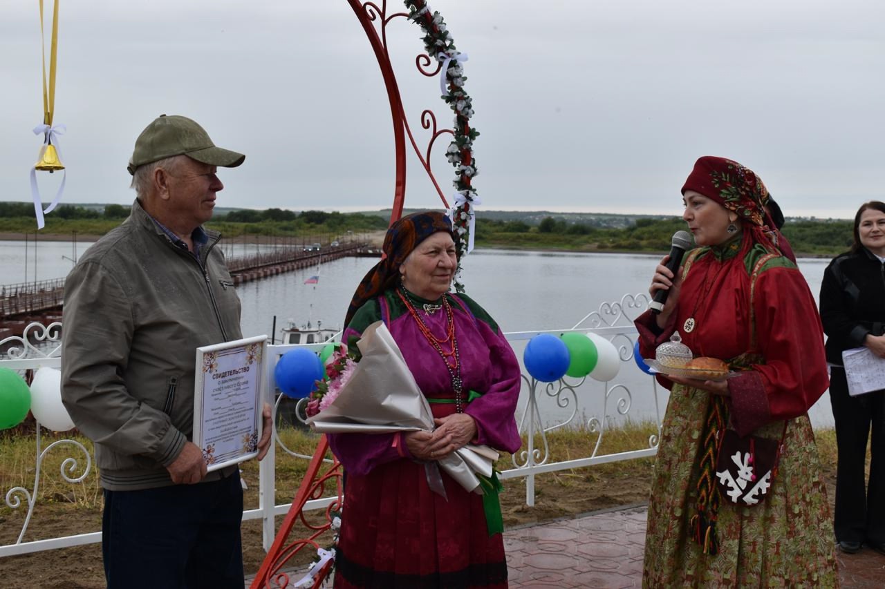 Почетное право перерезать ленточку на открытии нового объекта предоставили семье Михаила и Павлины Коневых из Ижмы, которые сегодня отмечают годовщину со дня бракосочетания – ситцевую свадьбу. Первыми прозвенеть в колокол под аркой уполномочили супругов Евгения и Ольгу Чупровых из деревни Брика с семейным стажем в более чем полвека.