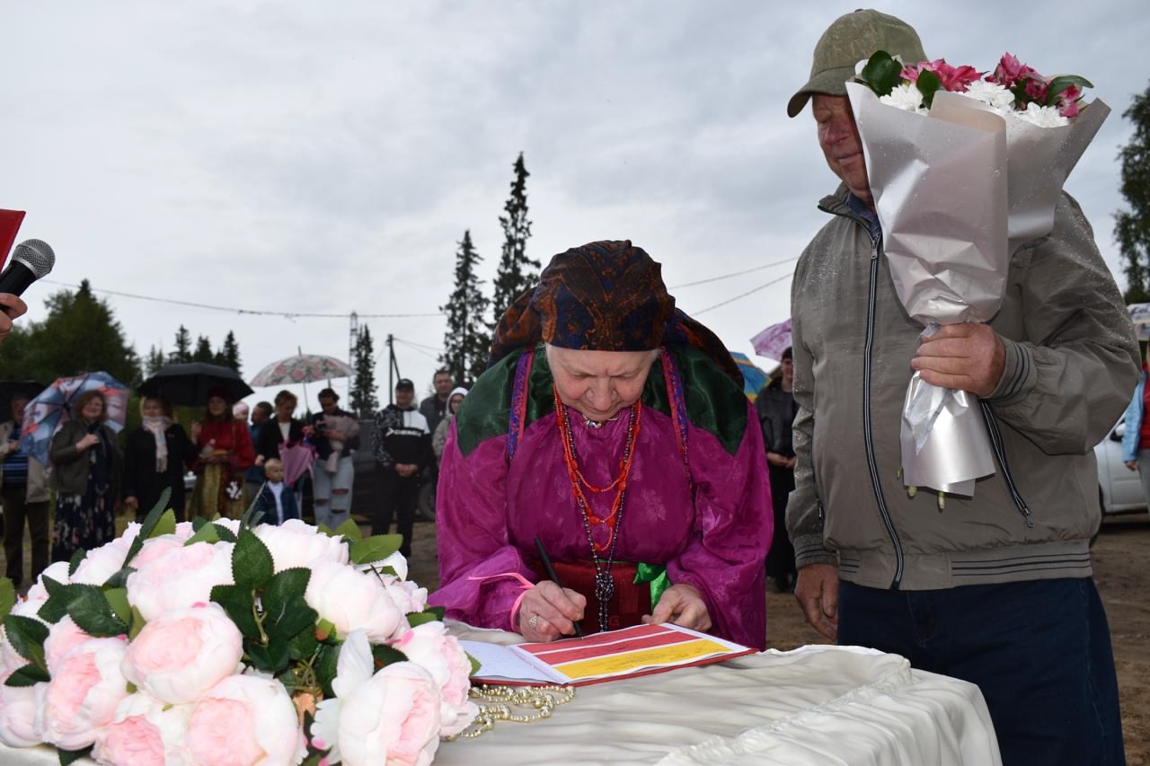 Со знаменательным событием ижемцев поздравили глава района Игорь Норкин, представитель ЛУКОЙЛа Надежда Воробьева, автор проекта и заместитель руководителя администрации района Наталья Чупрова, начальник территориального отдела ЗАГС Ижемского района Наталья Терентьева.