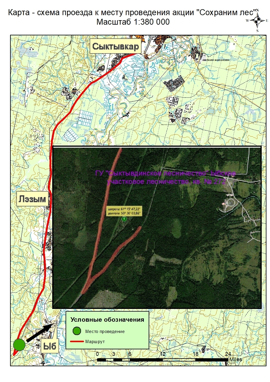 Акция начнется в 11:00 на территории Ыбского участкового лесничества (выдела 9, 20 квартала 272) по дороге на Финно-угорский этнопарк. Схема проезда прилагается.
