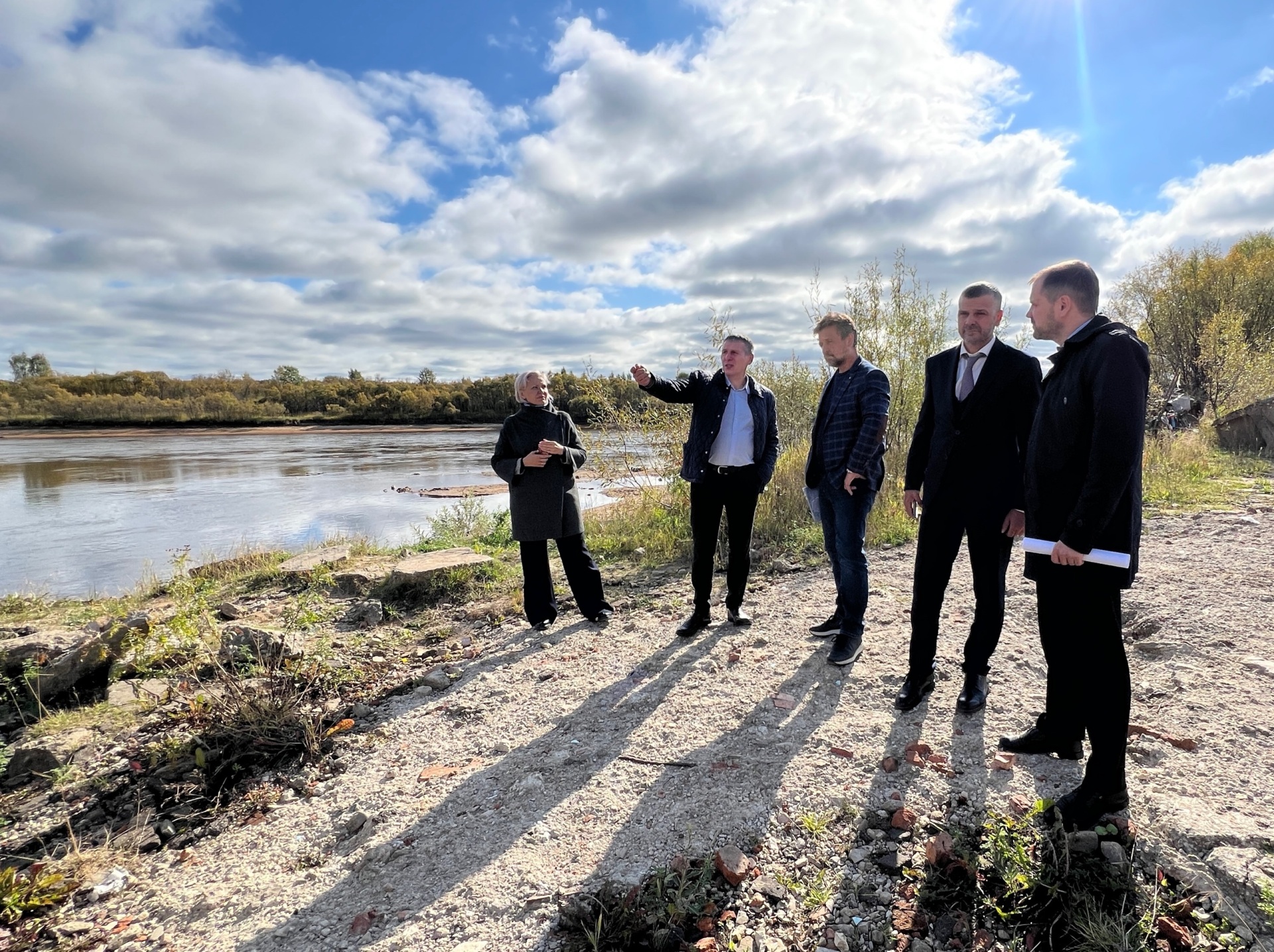 Руководитель Минприроды Коми Роман Полшведкин, сотрудники администрации Сыктывкара во главе с Максимом Мартышиным и руководитель научной группы Александр Завадский провели выездное совещание с осмотром береговой линии на островке Сидор-Полой.