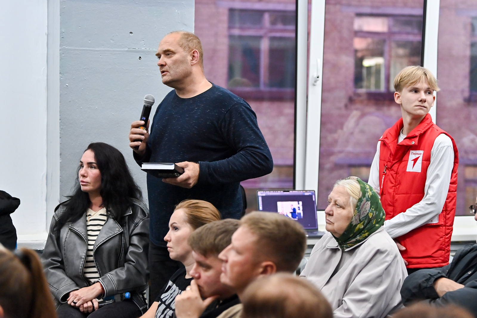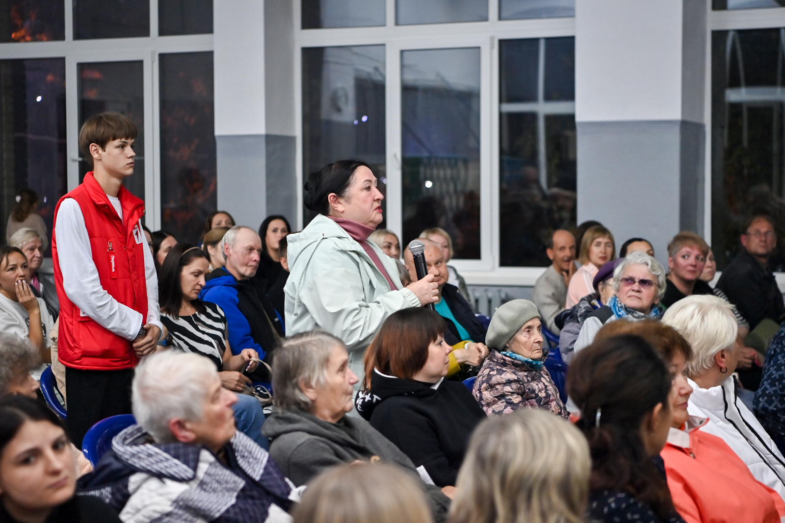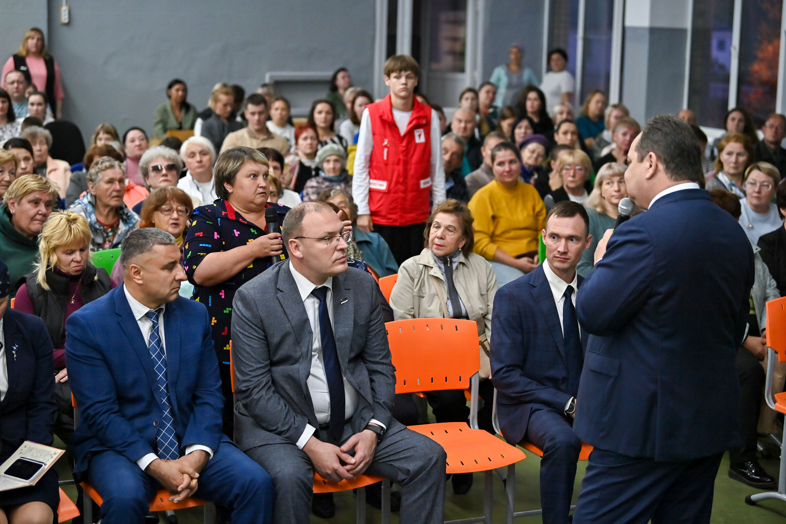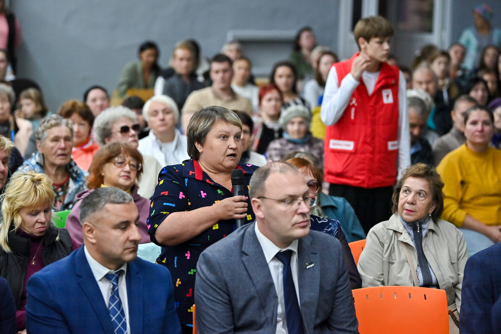 Прежде чем перейти к вопросам, руководитель региона рассказал водненцам о том, что планируется сделать в посёлке в ближайшее время: школу в следующем году ожидает ремонт, а на пришкольном стадионе оборудуют "умную" спортивную площадку.
