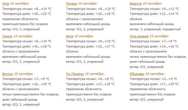 Прогноз погоды по республике  на 15 сентября подготовил Коми ЦГМС.