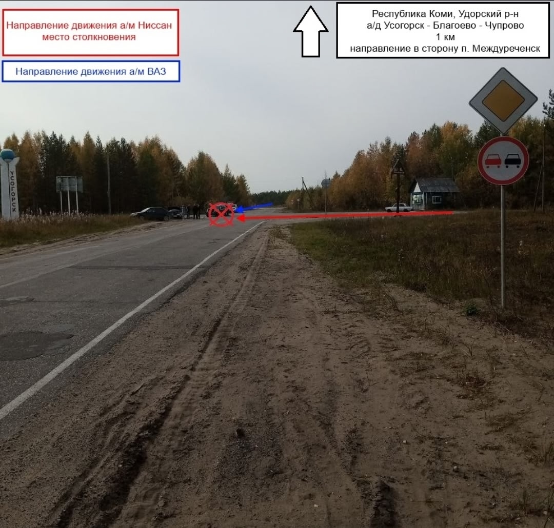 В 09:50 мужчина 1951 г.р., управляя машиной Nissan, двигаясь по второстепенной дороге ул. Дружбы п. Усогорск, на 1 км при выезде не уступил дорогу, в результате столкнулся с ВАЗом-21102.