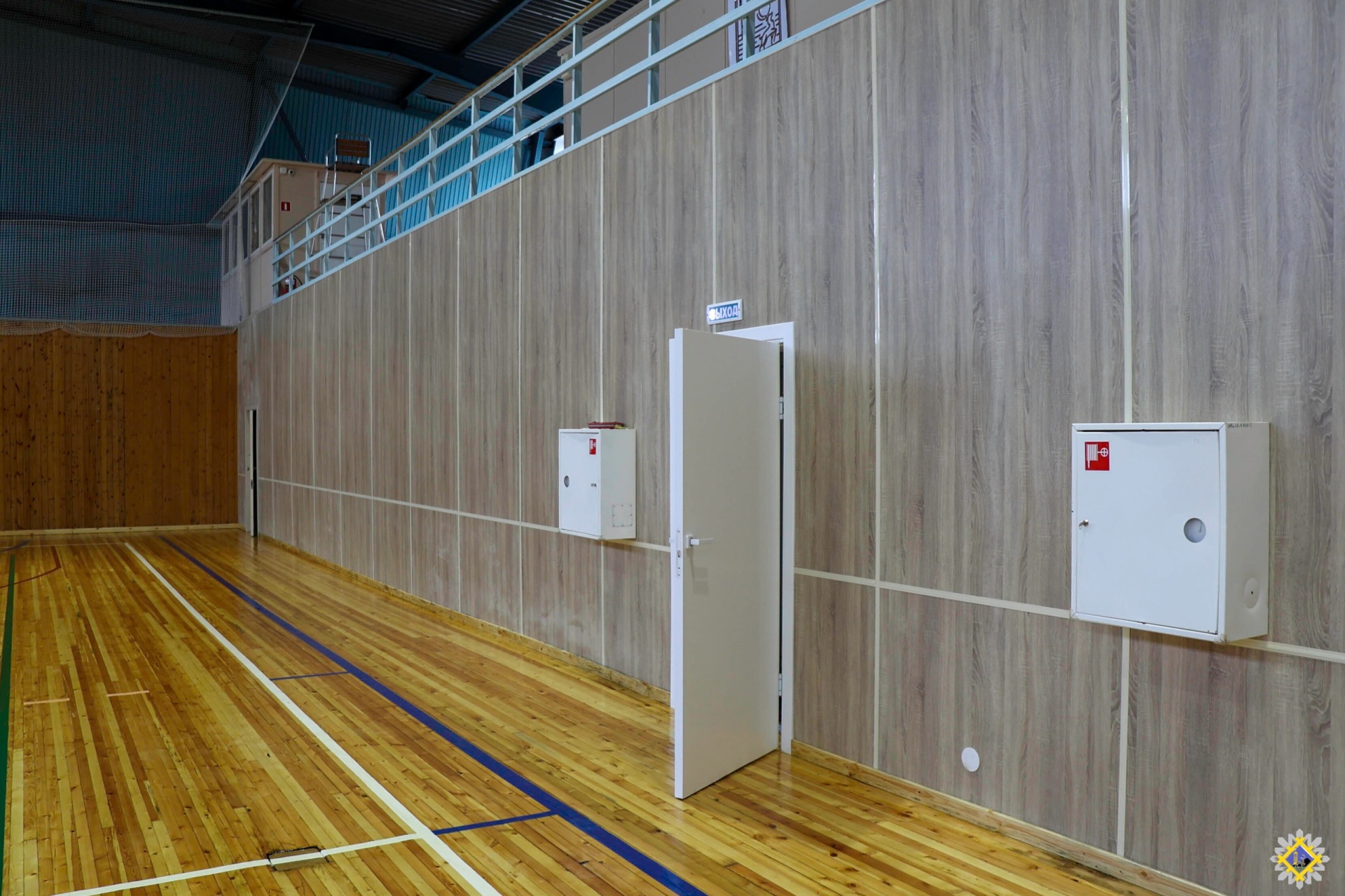 Работы проходили по двум направлениям. В рамках бюджетных средств был реализован проект "Народные инициативы", а именно капитальный ремонт деревянного пола спортивного зала с нанесением разметки для игровых видов спорта.