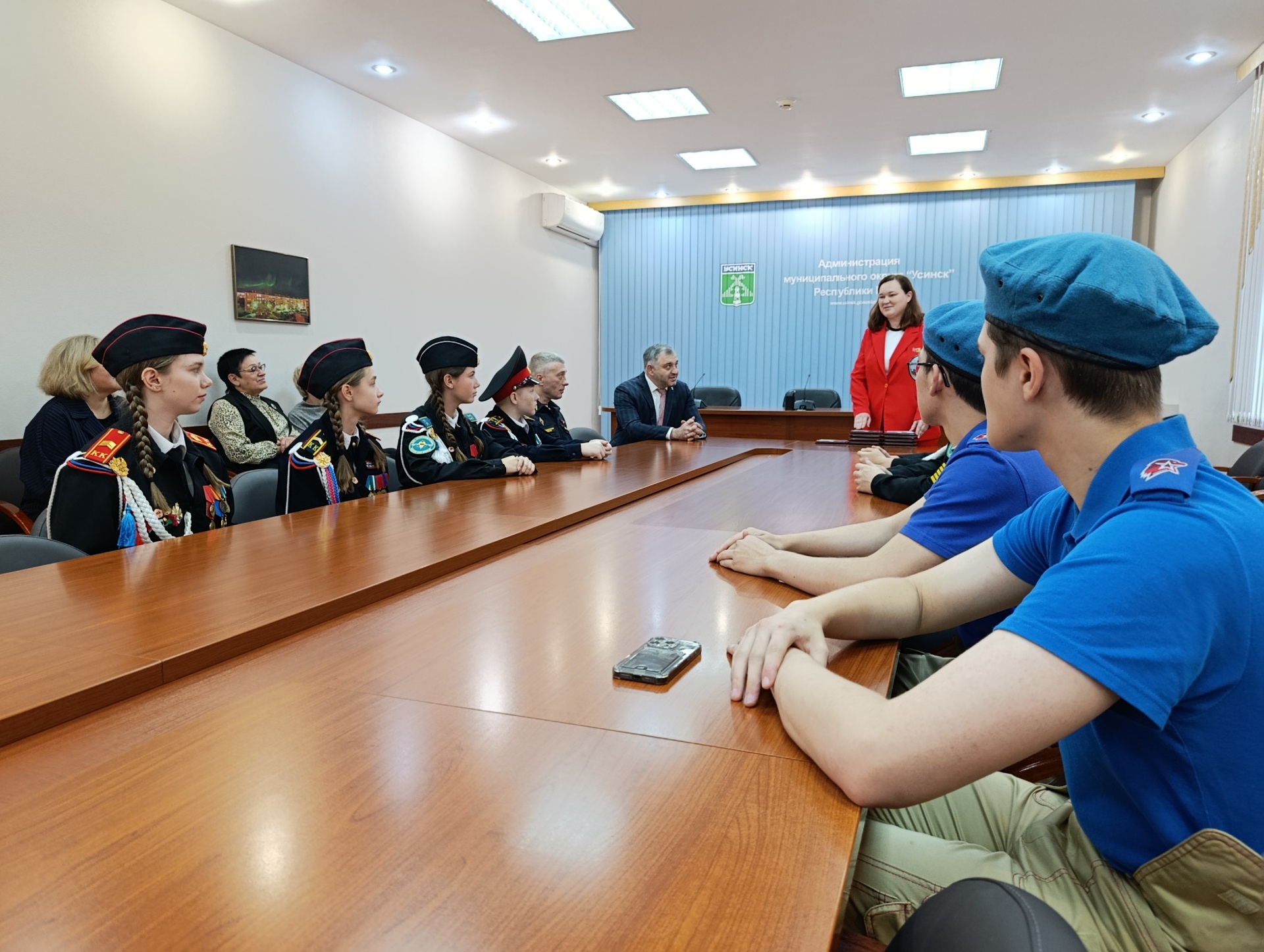 В рамках рабочей поездки Алексей Петренко встретился с главой администрации муниципалитета Николаем Такаевым. В ходе встречи руководители обсудили перспективы дальнейшего сотрудничества и вручили знаки отличия "Юнармейская доблесть" кадетам общеобразовательных организаций.