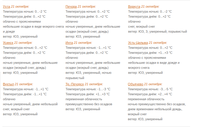 Погода в Коми 21 октября: в северных районах мокрый снег, дождь, -2...+3°С