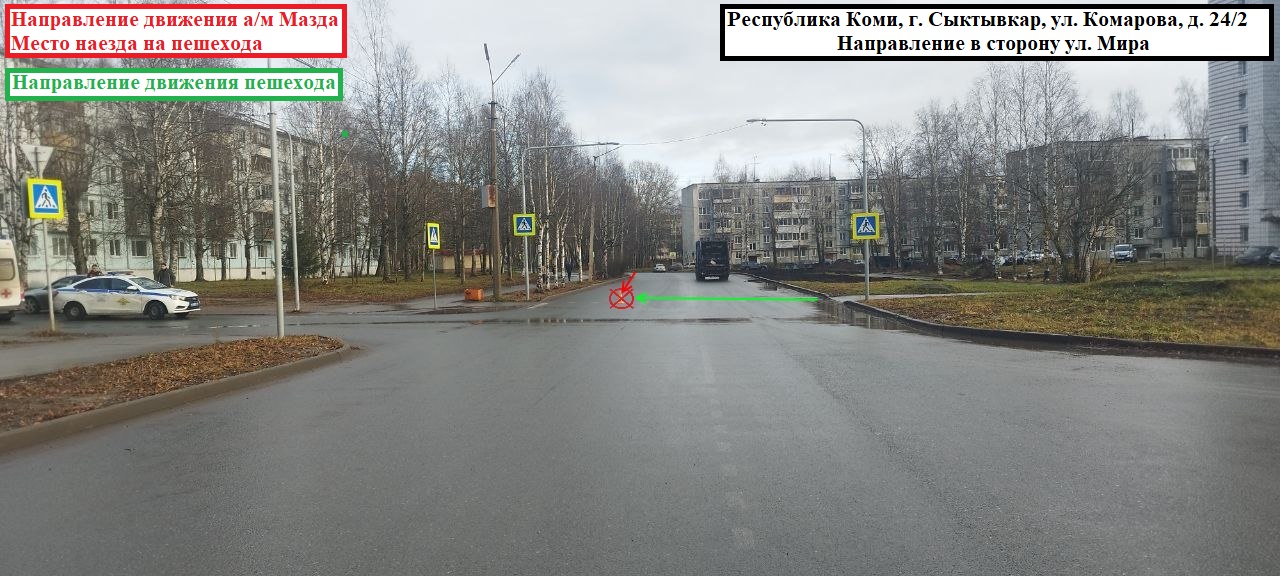 Аналогичное происшествие случилось в Эжве в 13:00. 41-летний мужчина, управляя автомобилем Mazda, двигался по ул.Комарова со стороны ул.Мира в направлении пр.Бумажников. Напротив дома №24/2 по ул.Комарова водитель иномарки сбил пешехода, которая переходила проезжую часть по нерегулируемому пешеходному переходу слева направо по ходу движения авто.