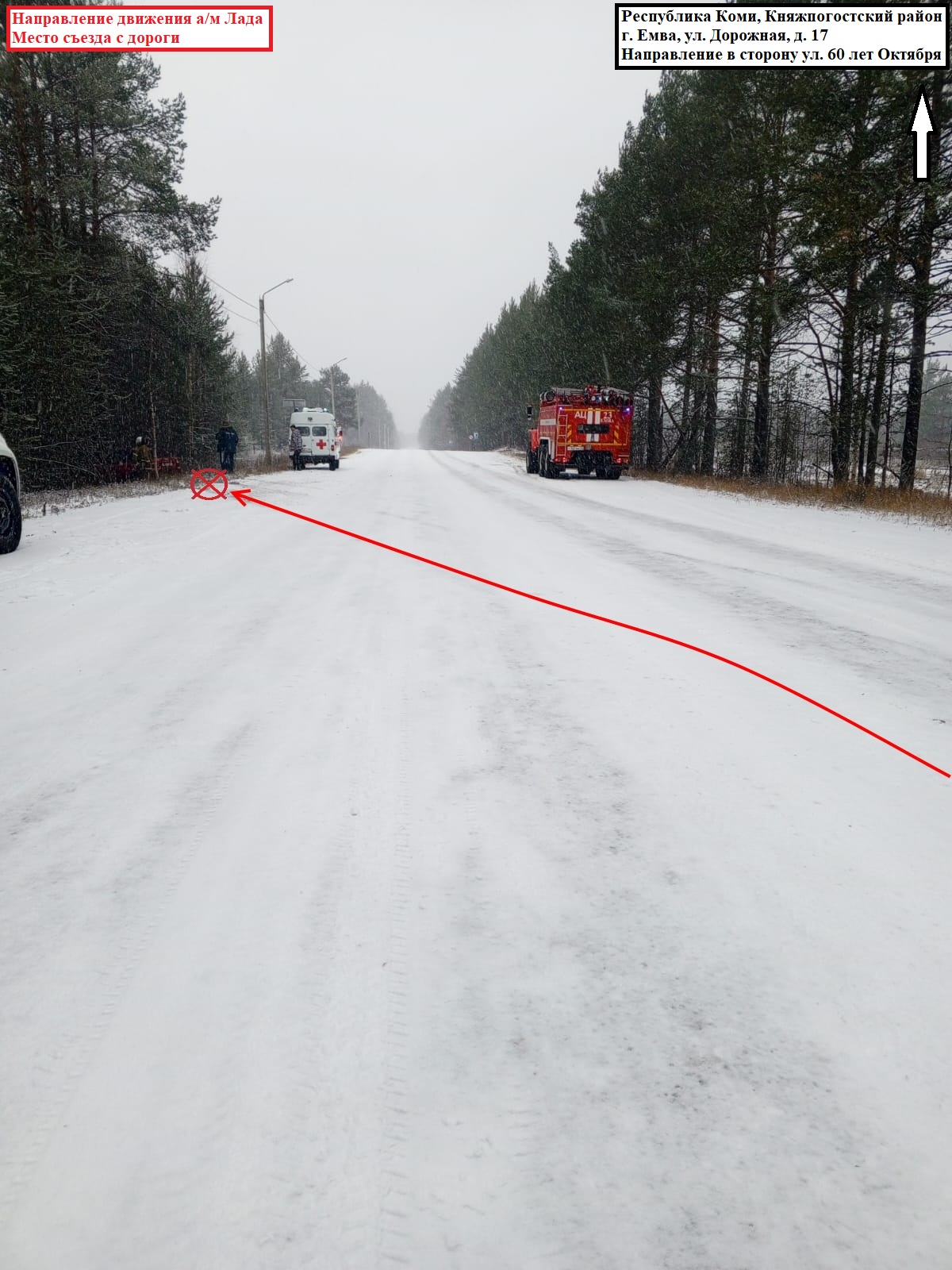 В Княжпогостском районе ДТП произошло в 8:30. Женщина 1975 года рождения, находясь за рулем "Лады Гранта", двигалась по ул. Дорожная г. Емва со стороны ул. Московской в направлении ул. 60 лет Октября. Напротив д. 17 по ул. Дорожная водитель не справилась с управлением, в результате чего совершила съезд с дороги в левый по ходу движения кювет, наехав на дерево. Женщина получила черепно-мозговую травму, сотрясение мозга, открытую рану волосистой части головы и ушиб передней брюшной стенки. Была госпитализирована. Стаж вождения - с 1996 года.