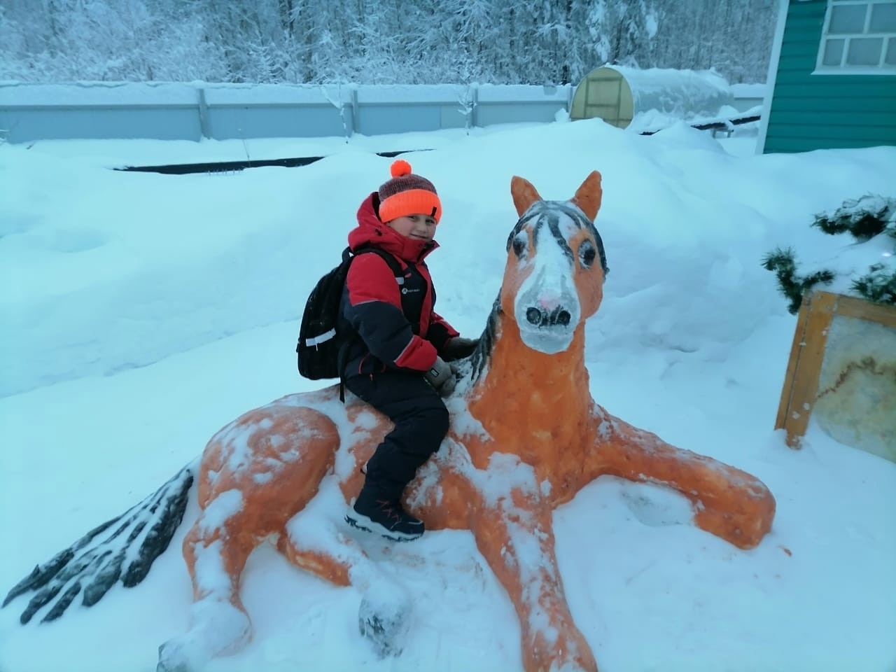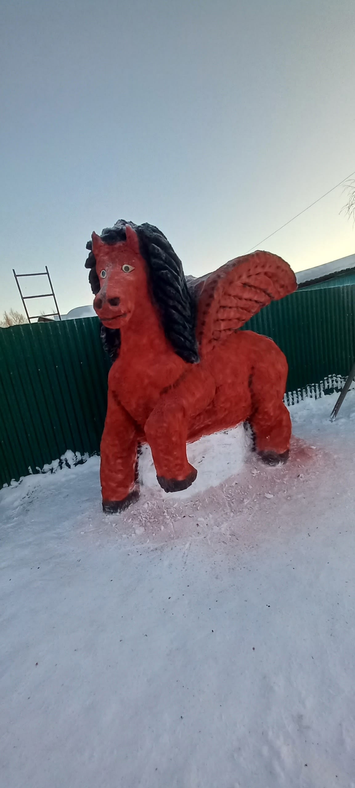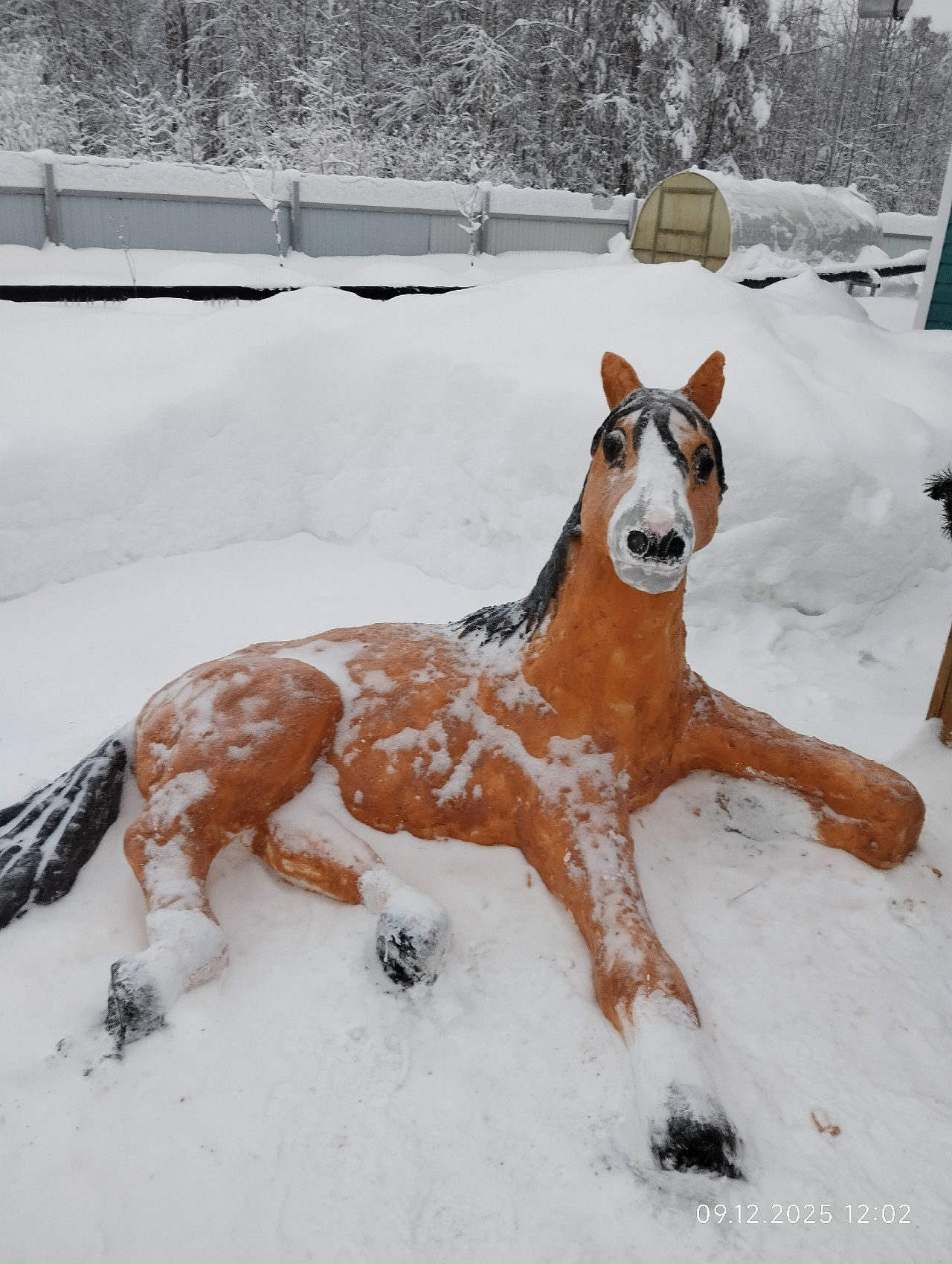 Второе место в конкурсе снежных фигур в селе Ыб заняла эта лошадка.