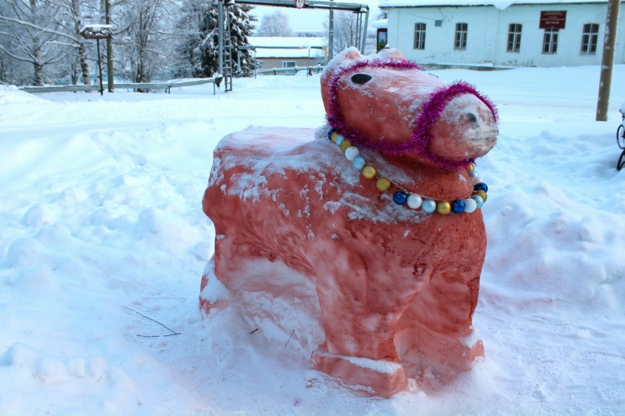 "Комиинформ" публикует традиционную подборку снежных фигур, сделанных жителями республики. В этом году ледяных символов года крайне мало. По всей вероятности, слепить лошадь из снега сложно.
