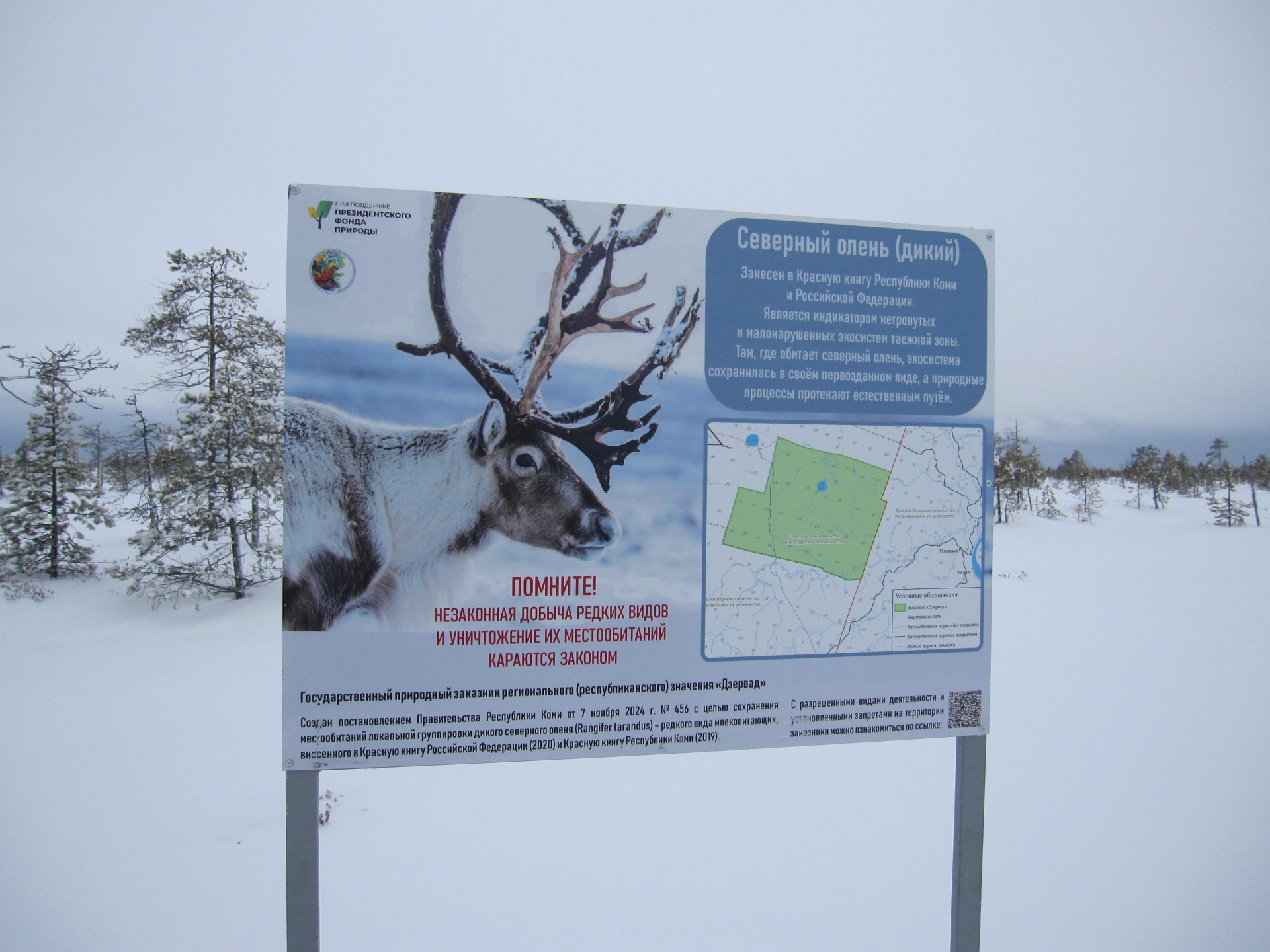 Параллельно сотрудники Центра по ООПТ Республики Коми провели контрольно‑надзорное мероприятие. По итогам проверки следов пребывания человека (в том числе снегоходной техники) и нарушений режима охраны территории не выявлено, что свидетельствует о соблюдении природоохранного законодательства на данном участке.