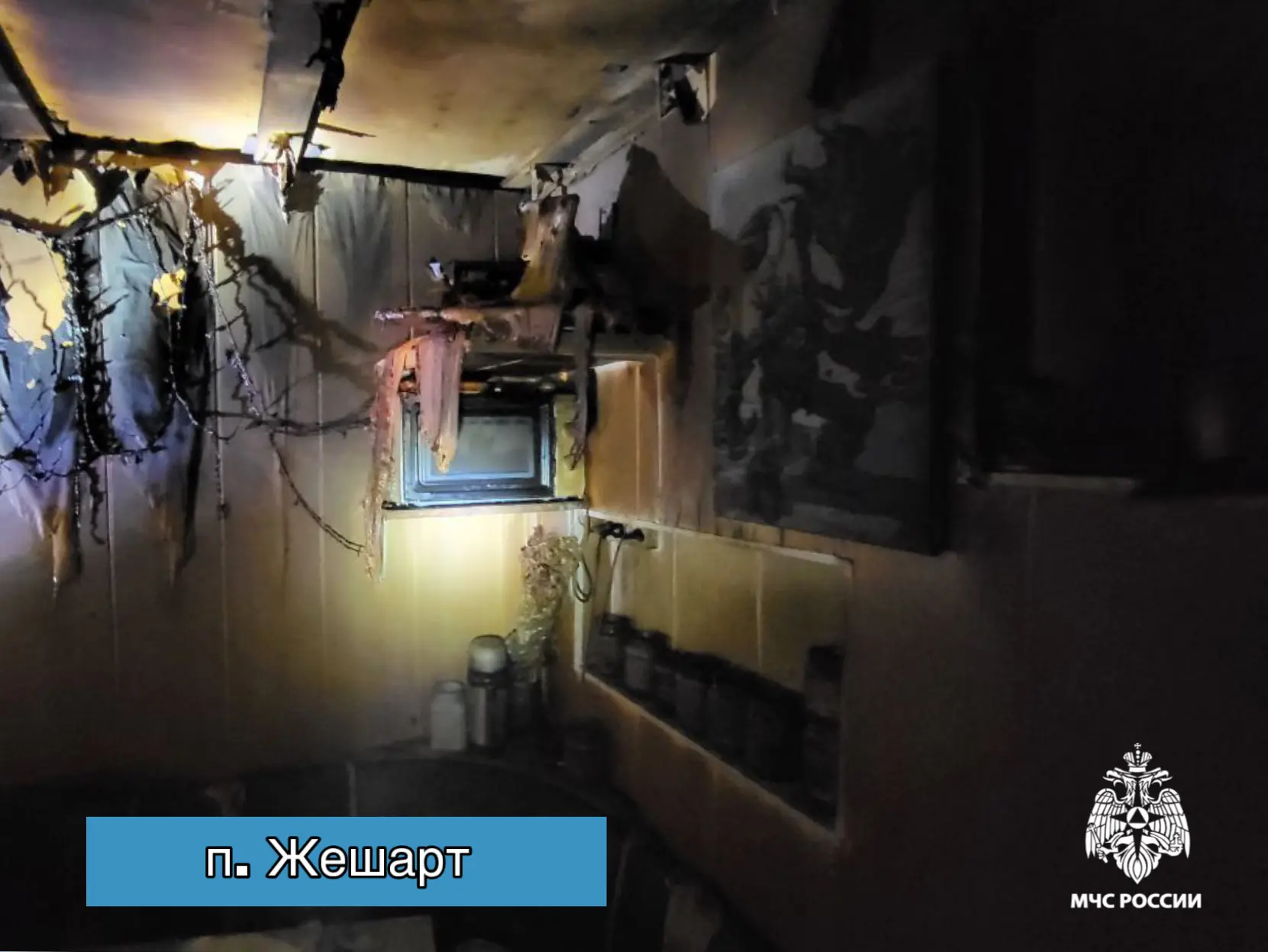 В Жешарте тушили жилой дом по ул. Майская. Площадь возгорания составила 20 квадратных метров. Причина пожара - нарушение требований пожарной безопасности при эксплуатации отопительной печи.