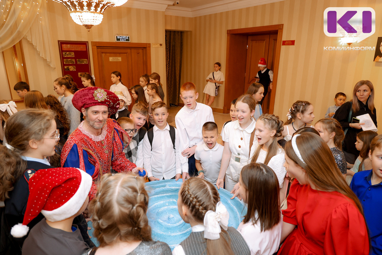 Елку главы Коми украсил спектакль "Золушка". Школьники окунулись в сказку режиссёра Евгения Софронова, удивились декорациям художника Полины Карпухиной и прониклись хореографией Анны Боян, автор музыки - Николай Григорьев.