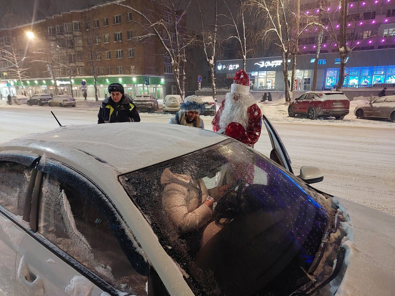 Инспекторы ДПС останавливали автомобили, а их помощники – Дед Мороз и Снегурочка – поздравляли водителей с приближающимися Новым годом и Рождеством. В ходе беседы автоинспекторы и сказочные персонажи напоминали о необходимости соблюдения скоростного режима, использования ремней безопасности и безусловного отказа от управления транспортным средством в состоянии опьянения.