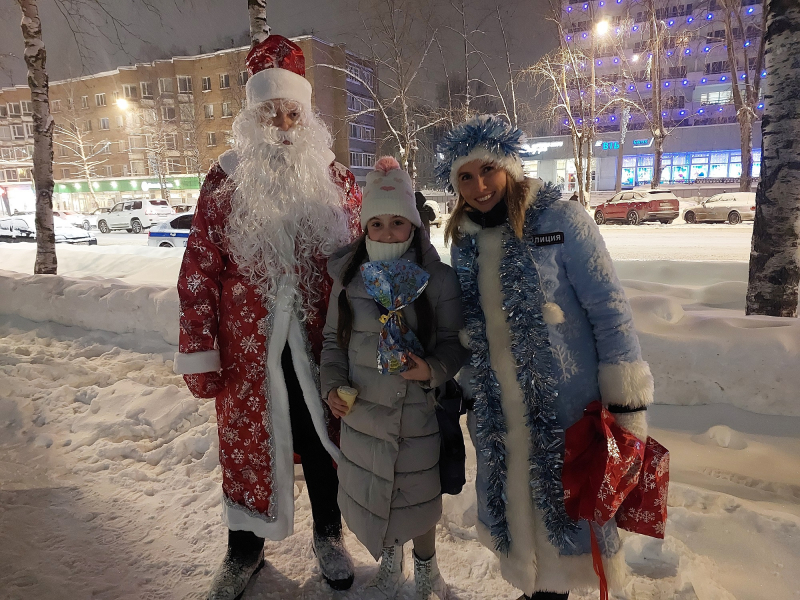 После профилактических бесед Дед Мороз и Снегурочка вручали водителям и пешеходам тематические подарки с пожеланиями безопасных дорог. Юным участникам дорожного движения дарили фликеры и наборы со сладостями.