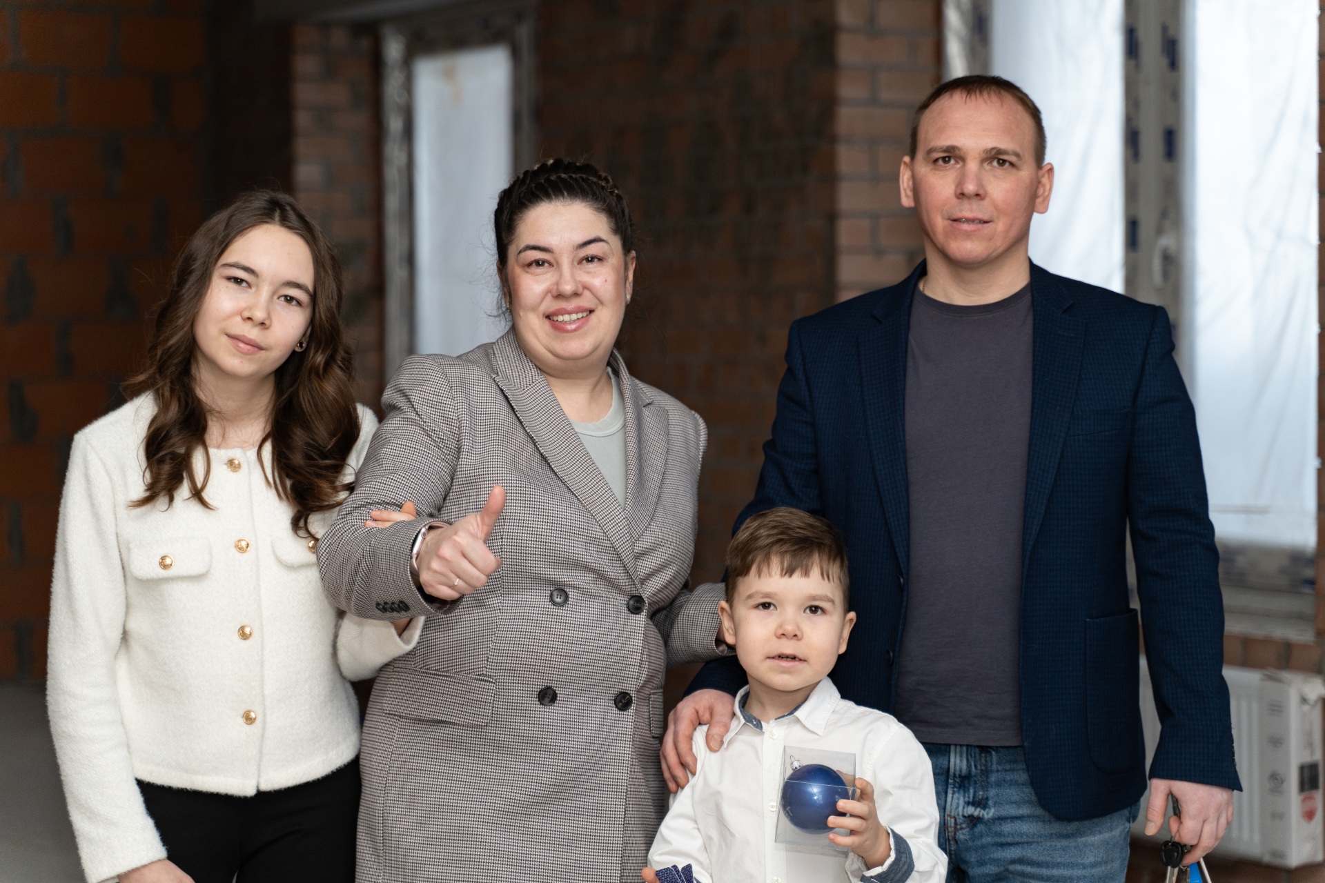 В субботу, 20 декабря, СКАТ передал ключи от квартир в новом жилом комплексе "Планета 9" на Октябрьском проспекте, 137. В числе будущих новосёлов оказалась семья Пыстоговых — папа Игорь, мама Янина, дочь Ульяна и сын Марк.