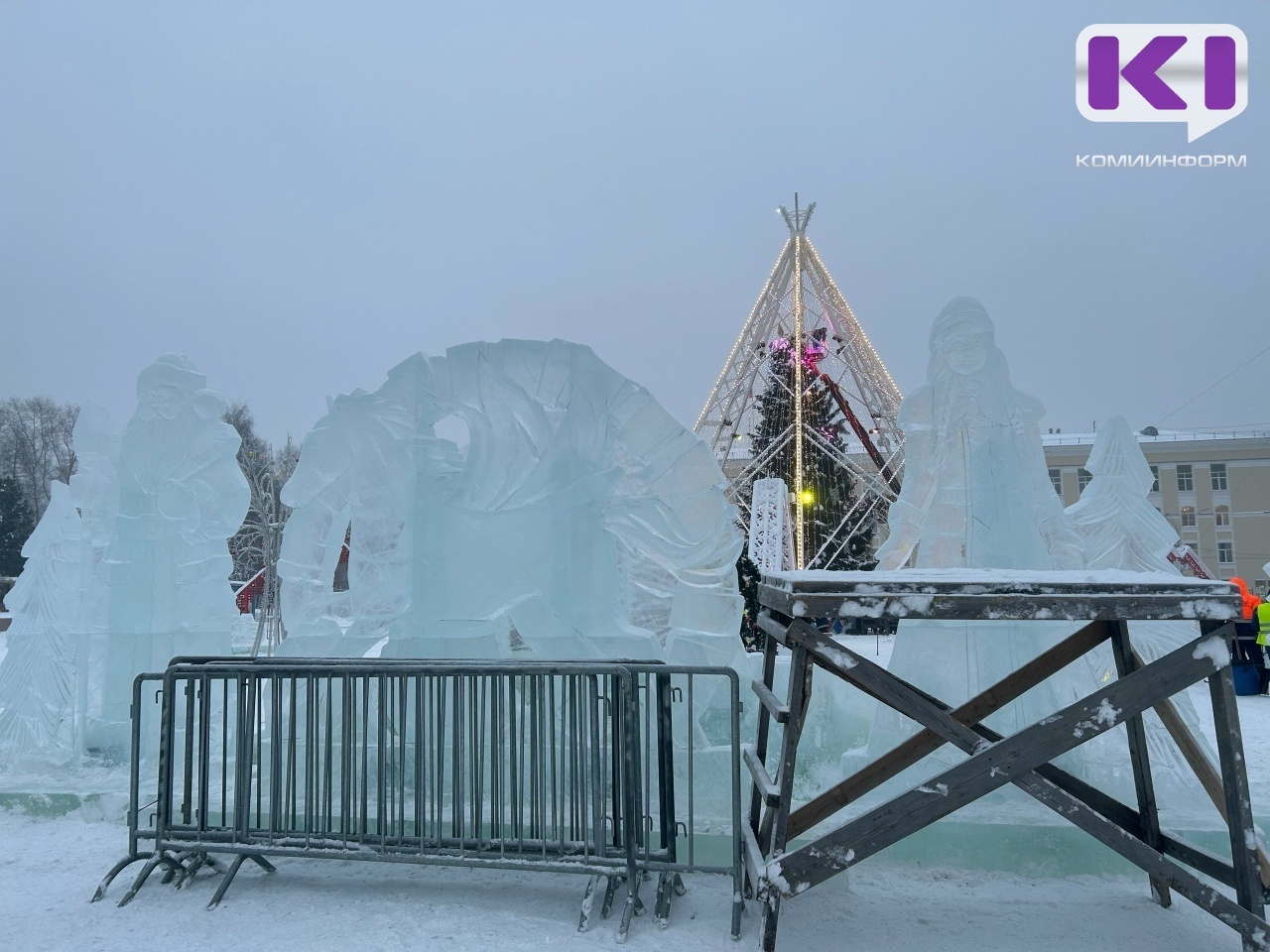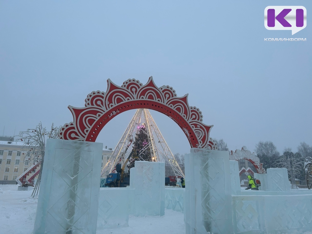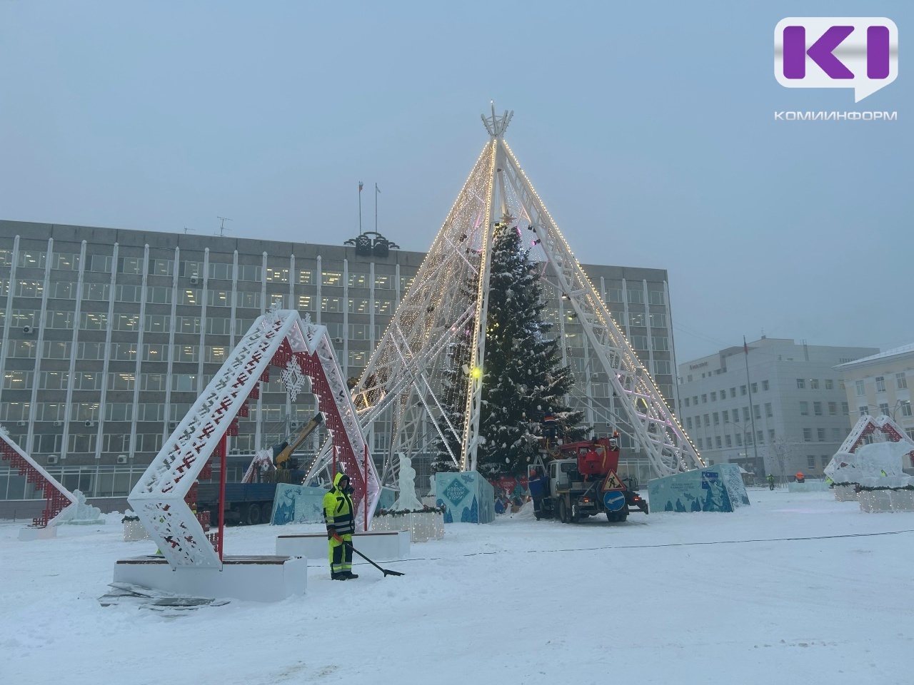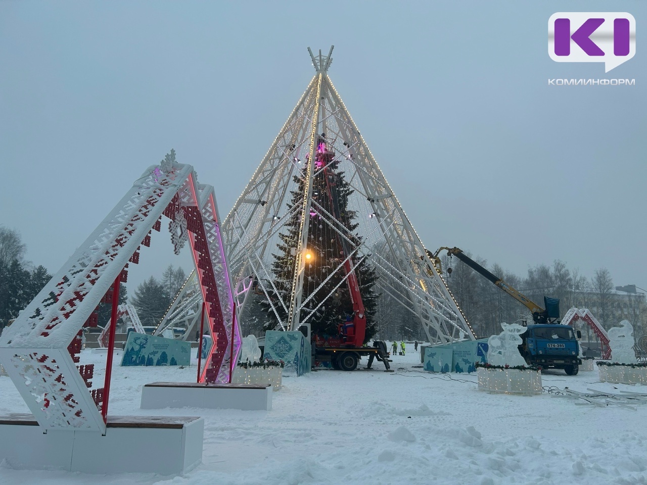 В Сыктывкаре обустройство новогоднего городка на Стефановской площади вышло на финишную прямую - специалисты продолжают тестировать системы светомузыкального оборудования, рабочие очищают площадку и убирают ограду.